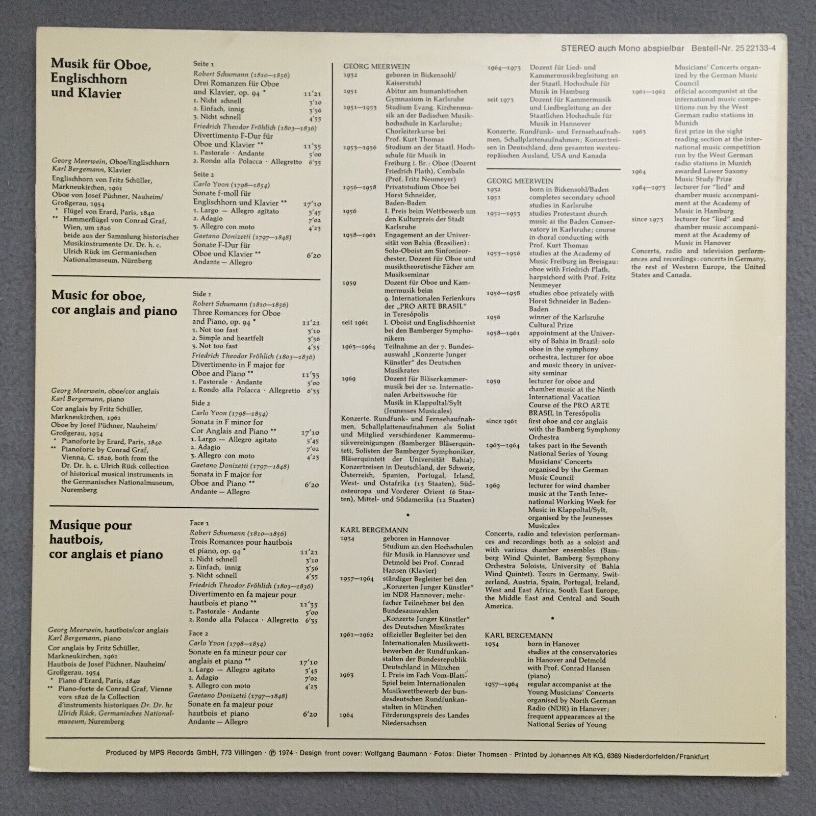 S723 Schumann Donizetti Music for Oboe Meerwein Bergemann BASF 25 22133-4 Stereo