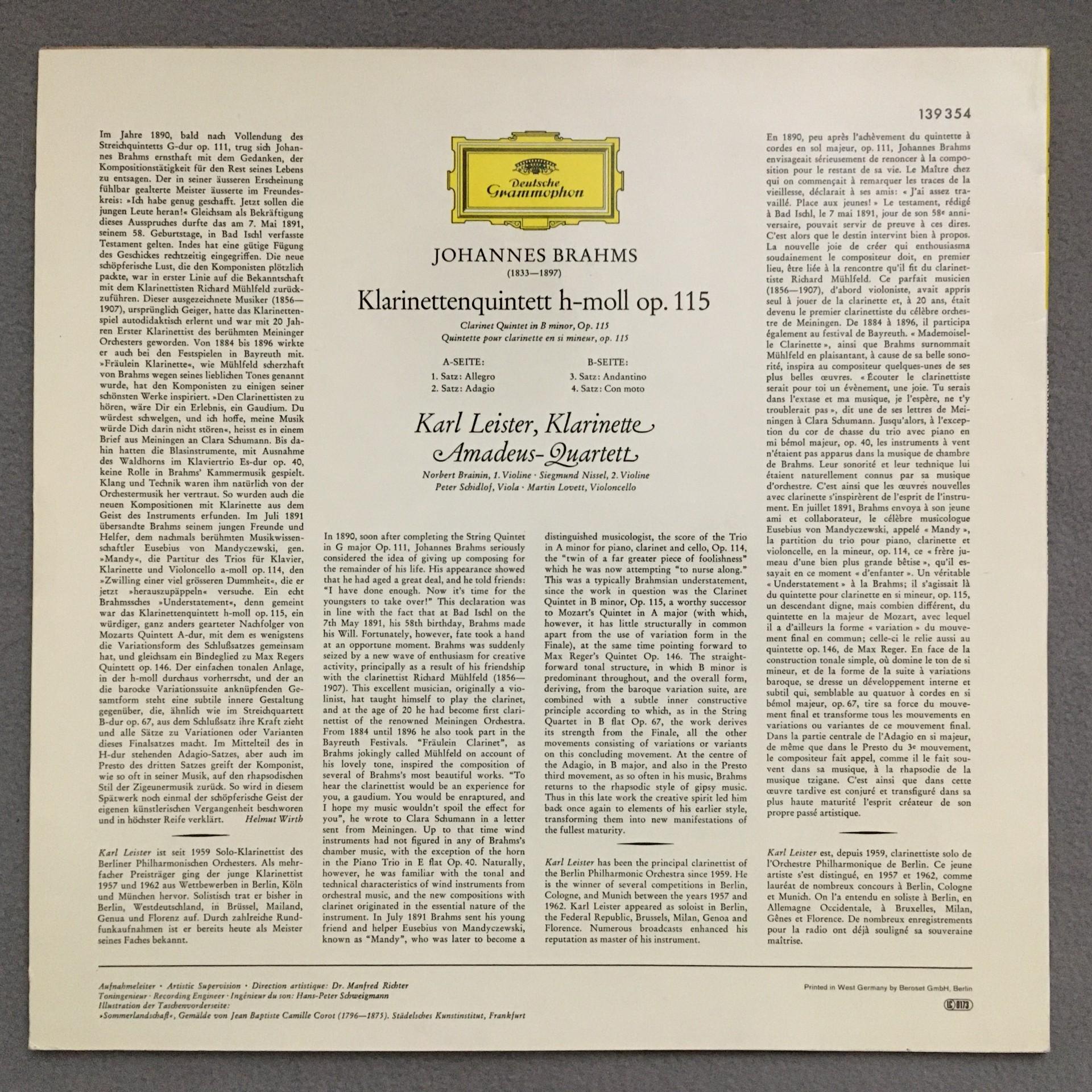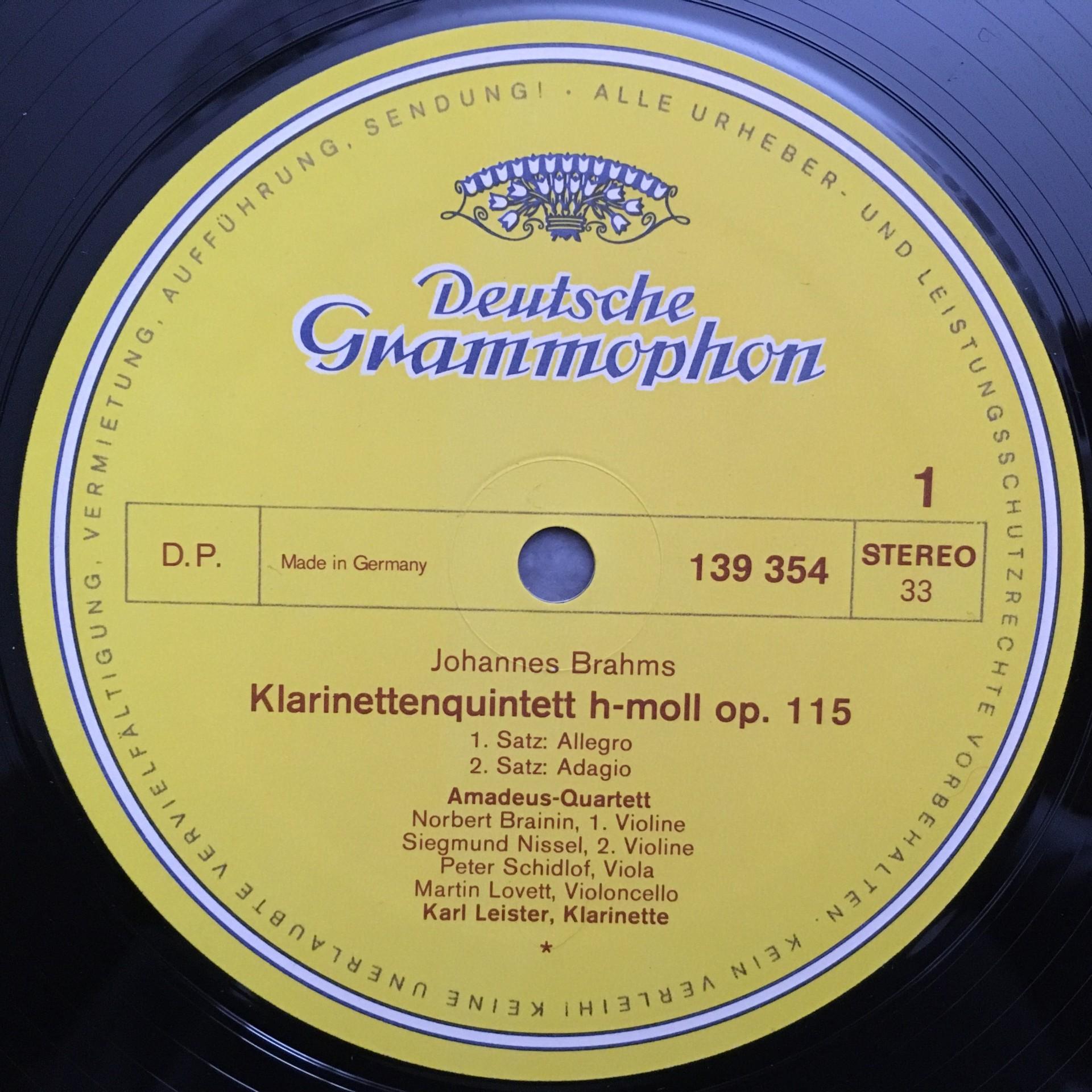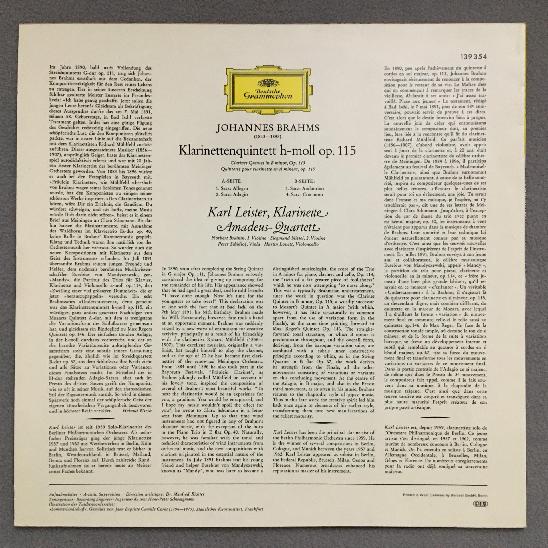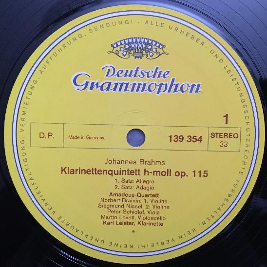 N741 Brahms Clarinet Quintet Leister Amadeus Quartet Brainin DGG 139 354 Stereo