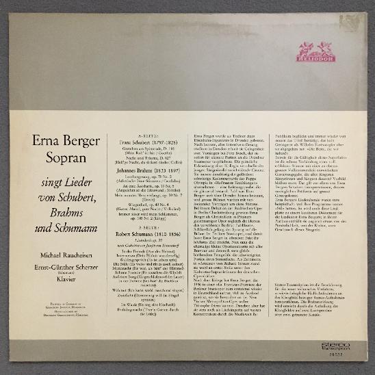 N763 Erna Berger sings Schubert Brahms Schumann Songs Heliodor 89 532 Stereo