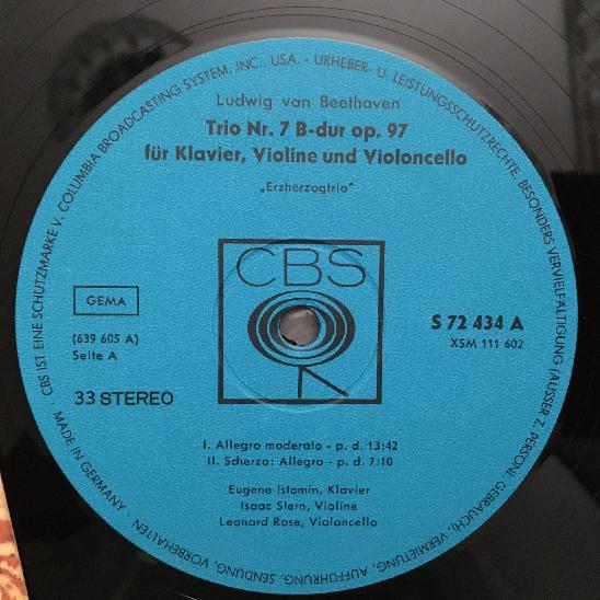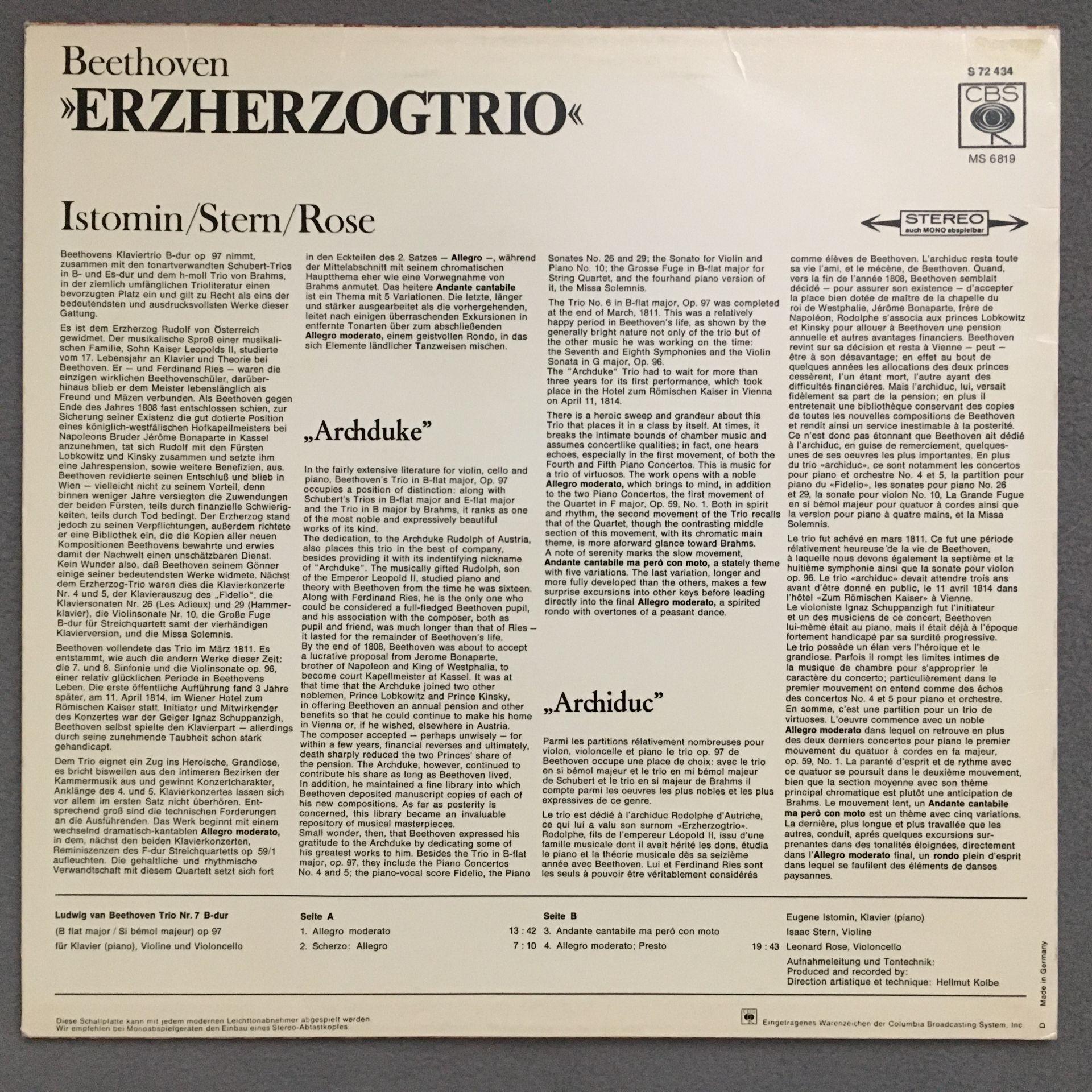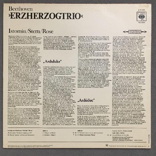 N767 Beethoven Erzherzog Trio Istomin Stern Rose CBS S 72 434 Stereo