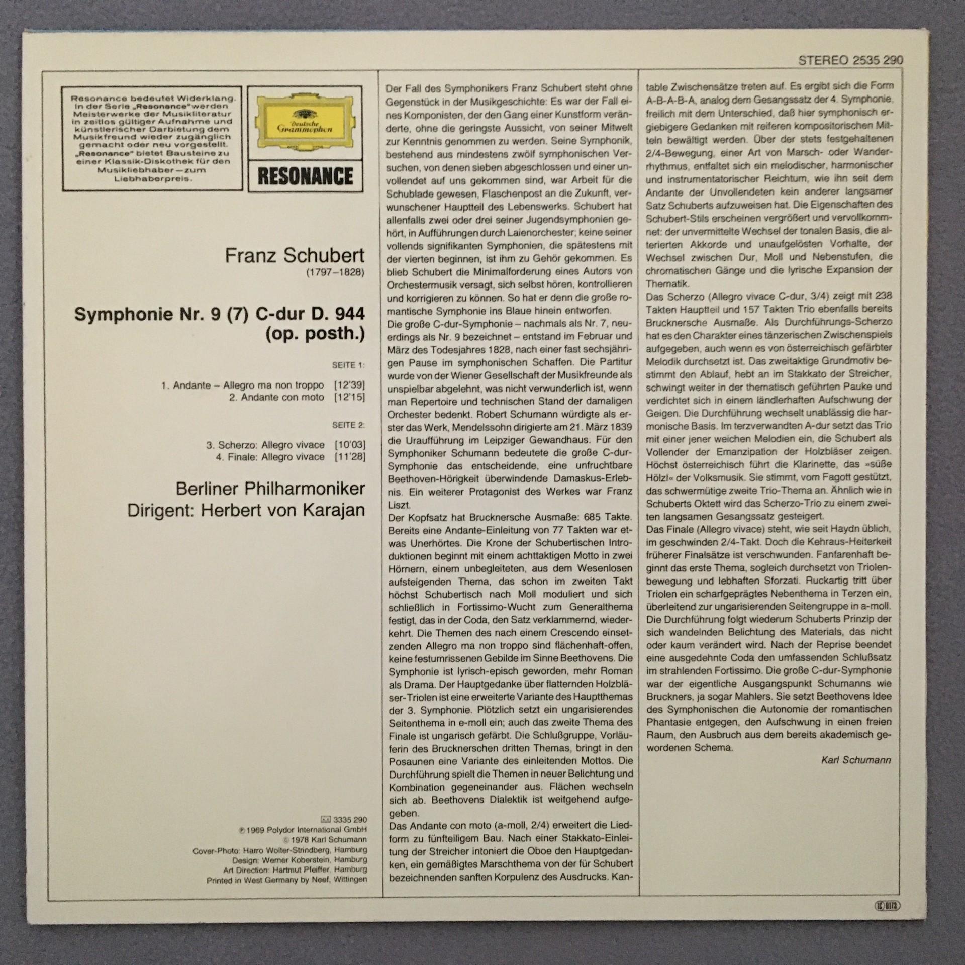 N778 Schubert Symphony No.9 Karajan BPO DGG 2535 290 Stereo