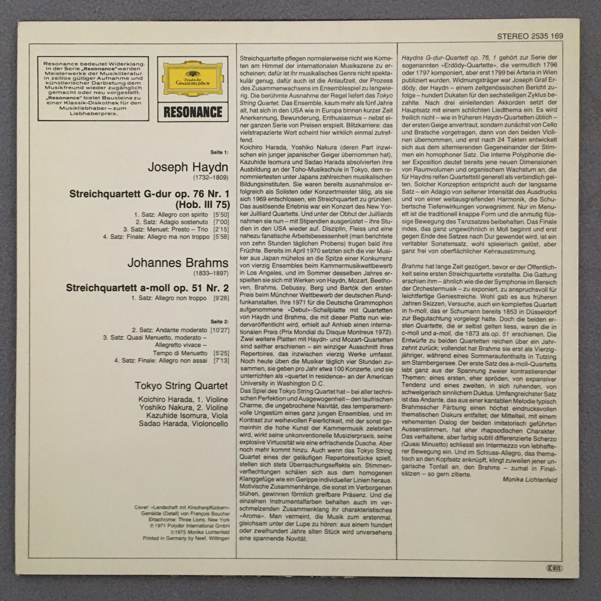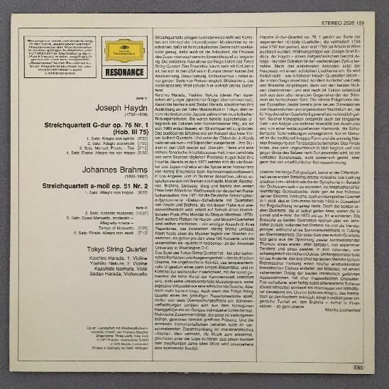 N779 Haydn Brahms String Quartets Tokyo String Quartet DGG 2535 169 Stereo