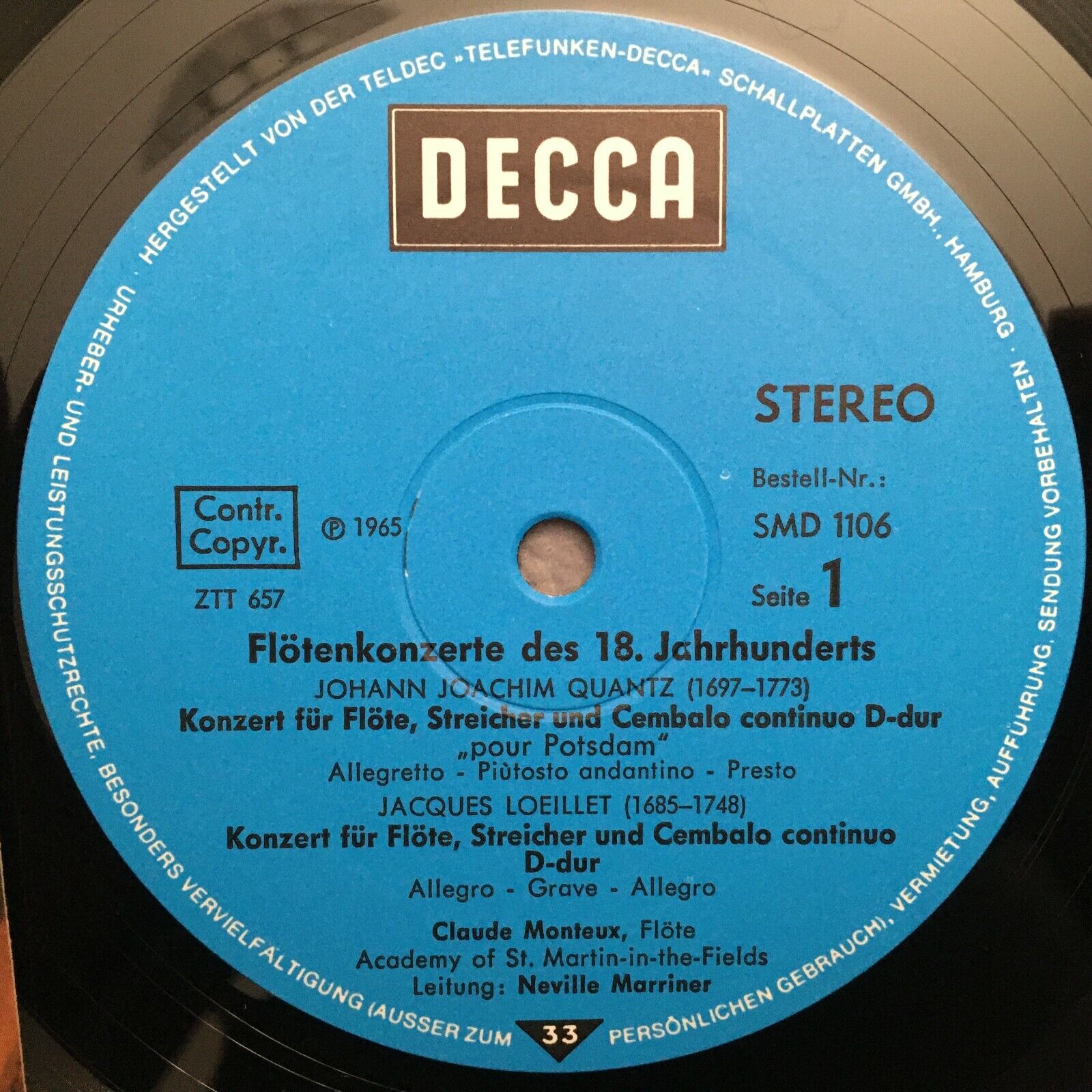 S719 Quantz Leclair Flute Concertos Monteux Marriner DECCA SMD 1106 Stereo