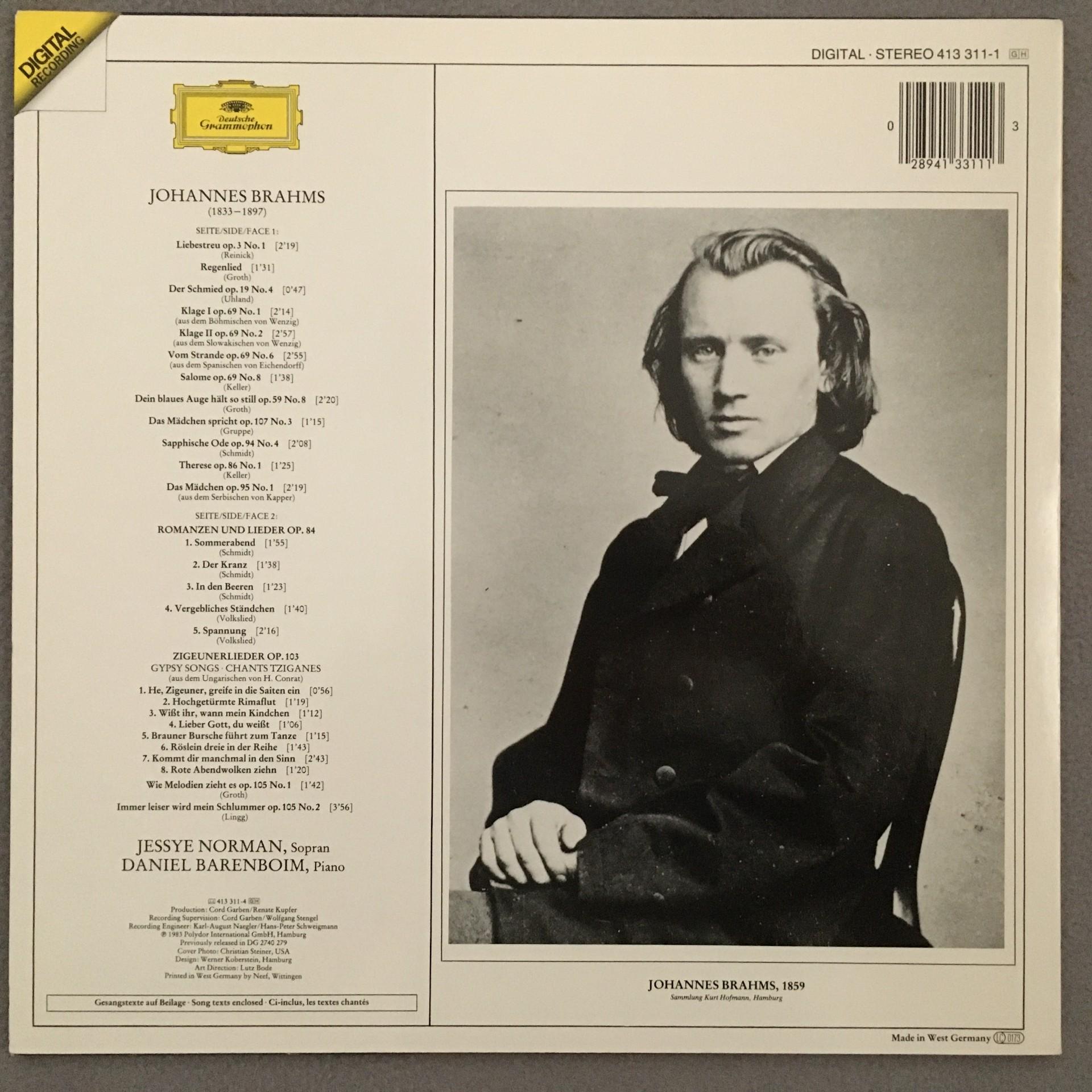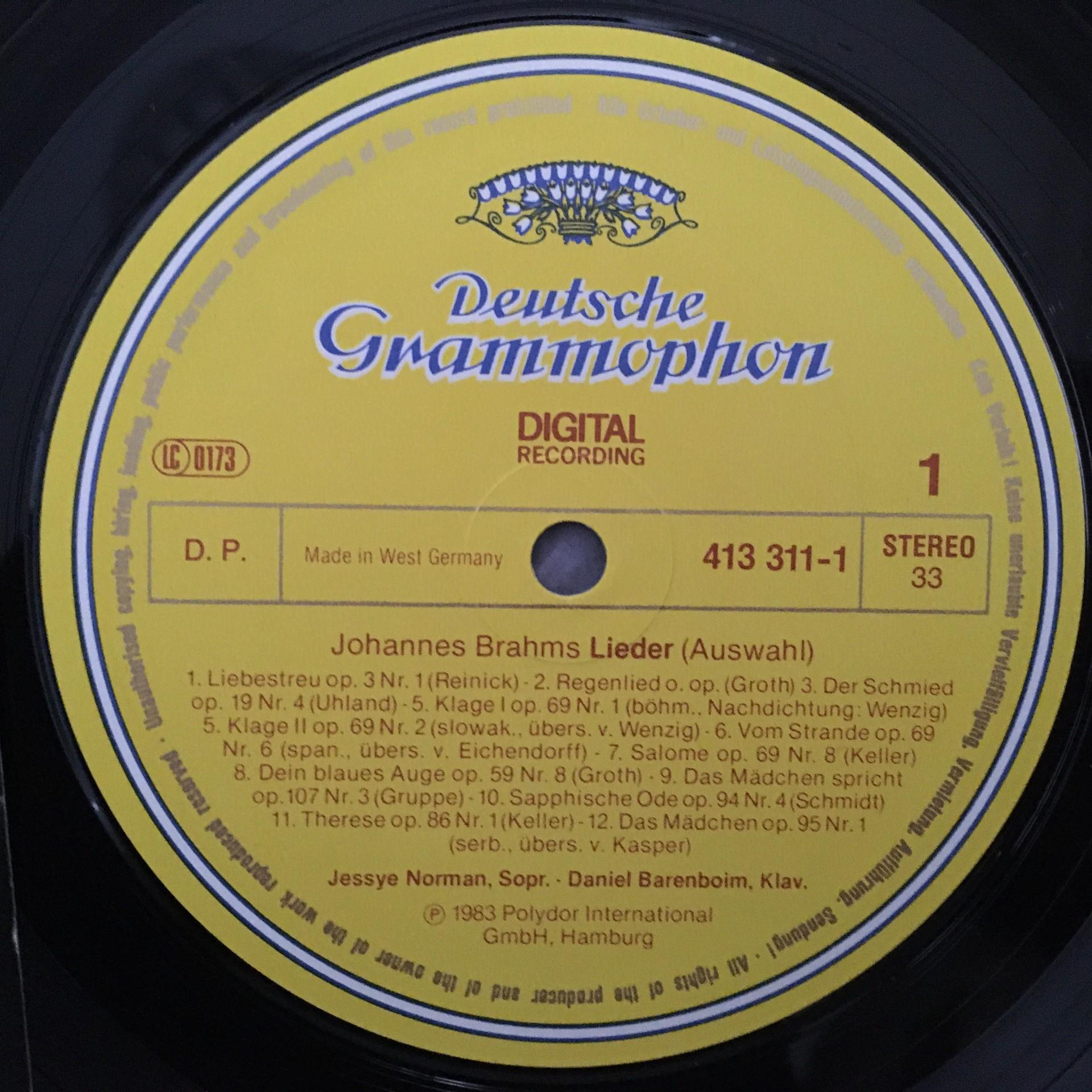 N795 Brahms Songs Norman Barenboim DGG 413 311-1 Digital Stereo