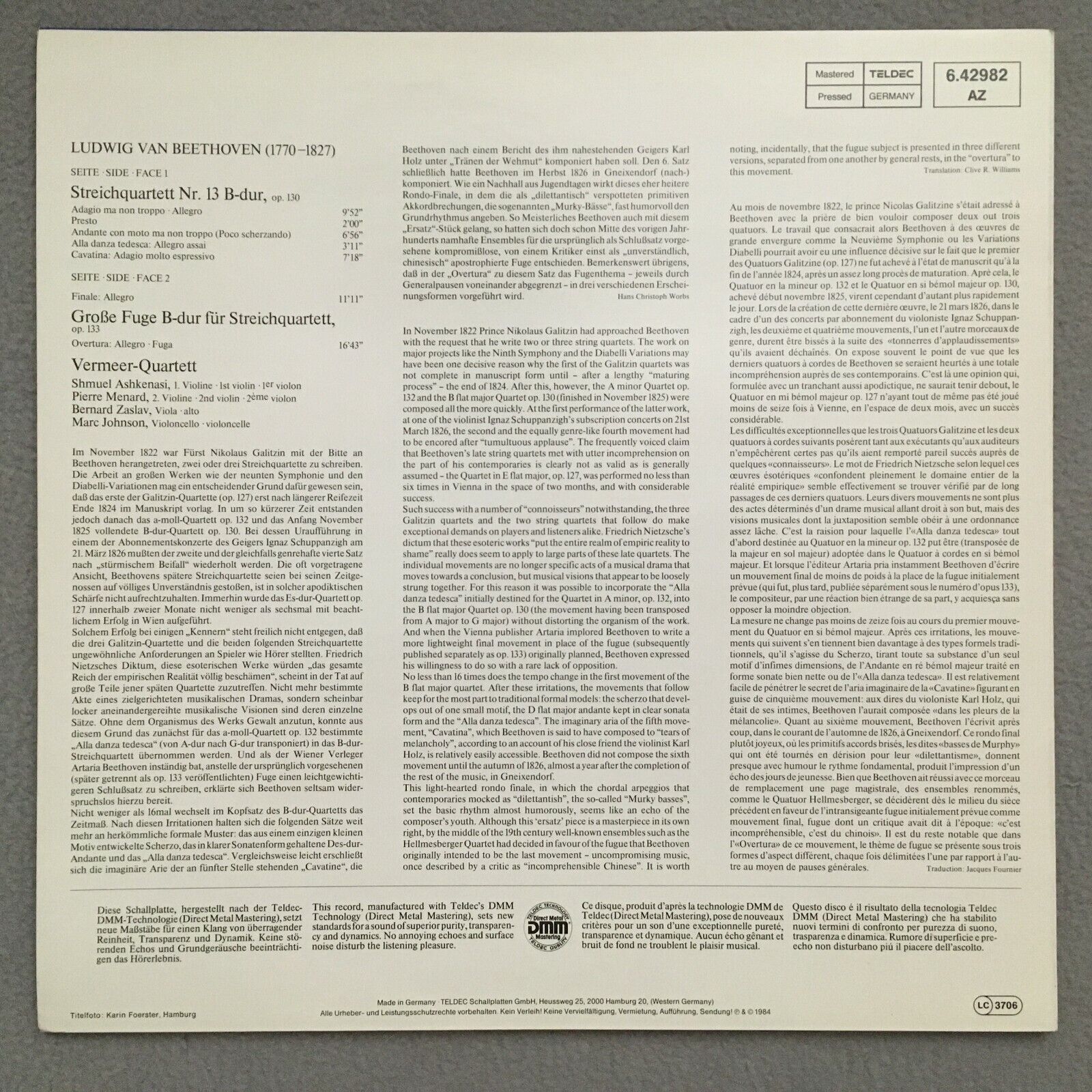 J146 Beethoven String Quartets Vermeer Quartet Teldec 6.42982 AZ Digital Stereo
