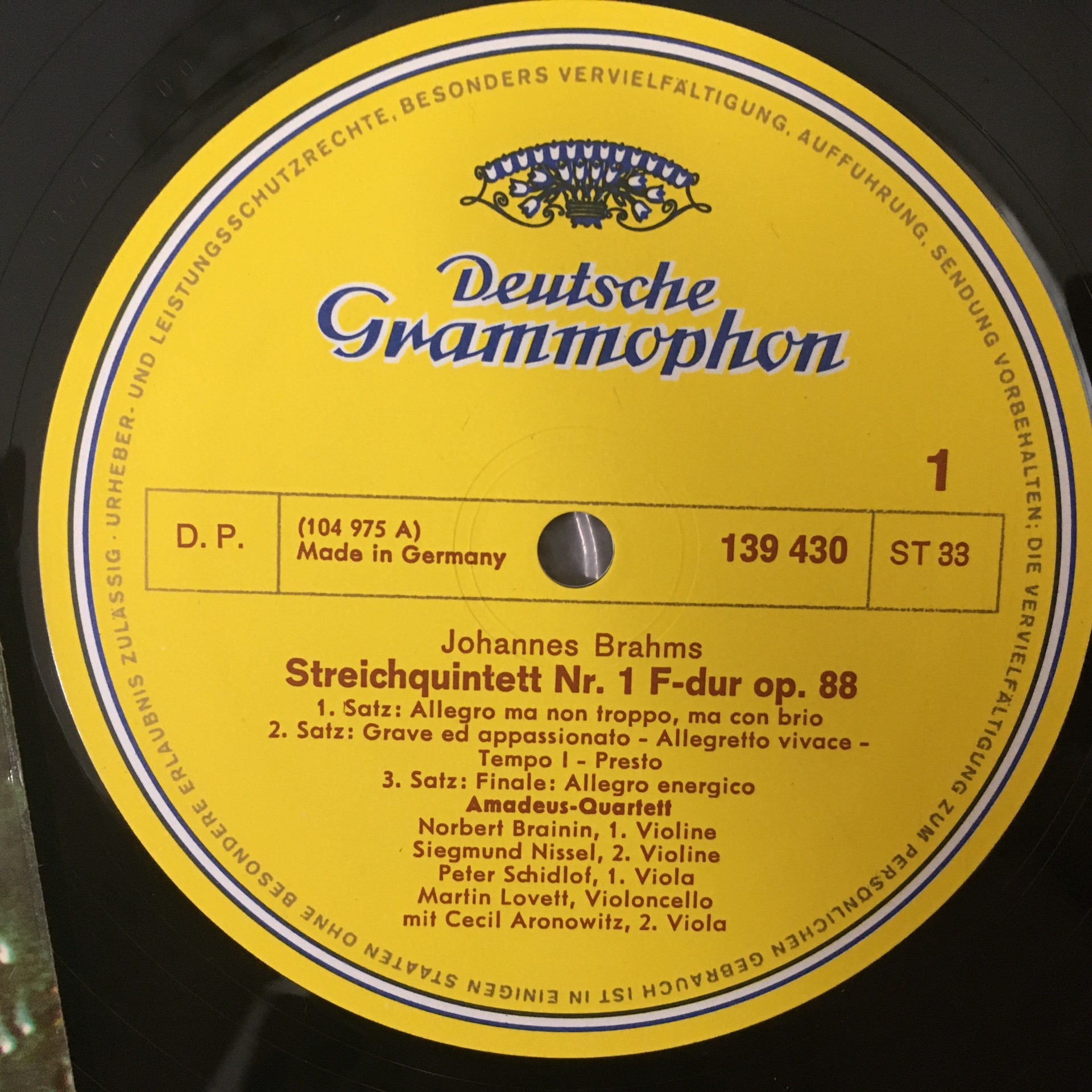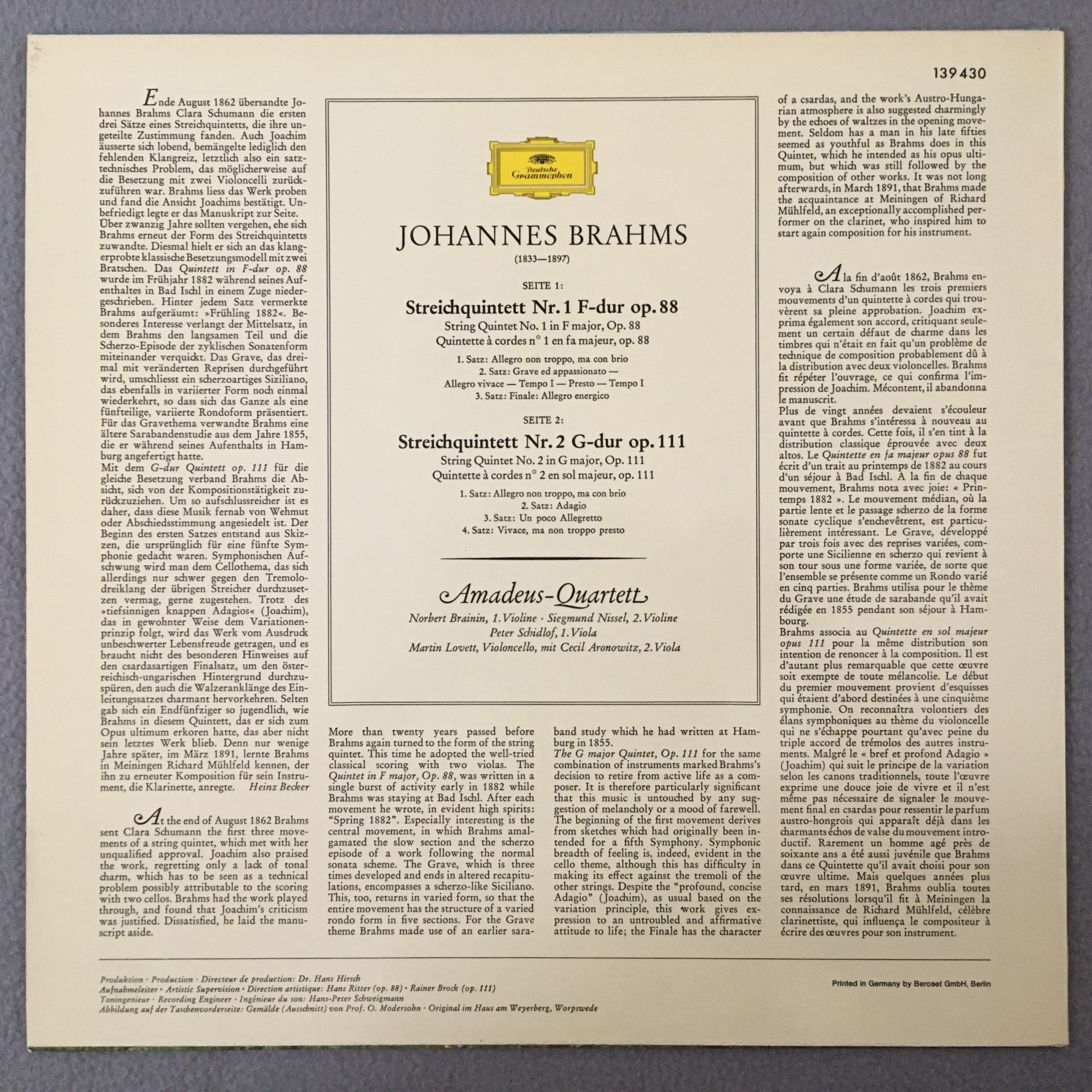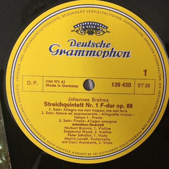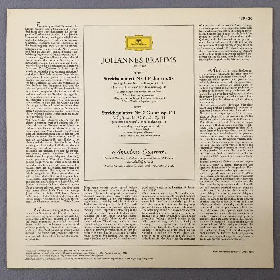 R610 Brahms String Quintets Aronowitz Amadeus Quartet DGG 139 430 Stereo