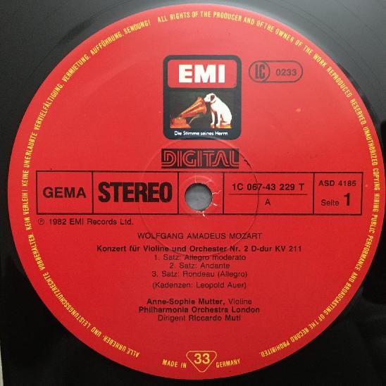 N831 Mozart Violin Concertos No.2 & 4 Mutter Muti EMI 1C 067-43 229 T Digital St