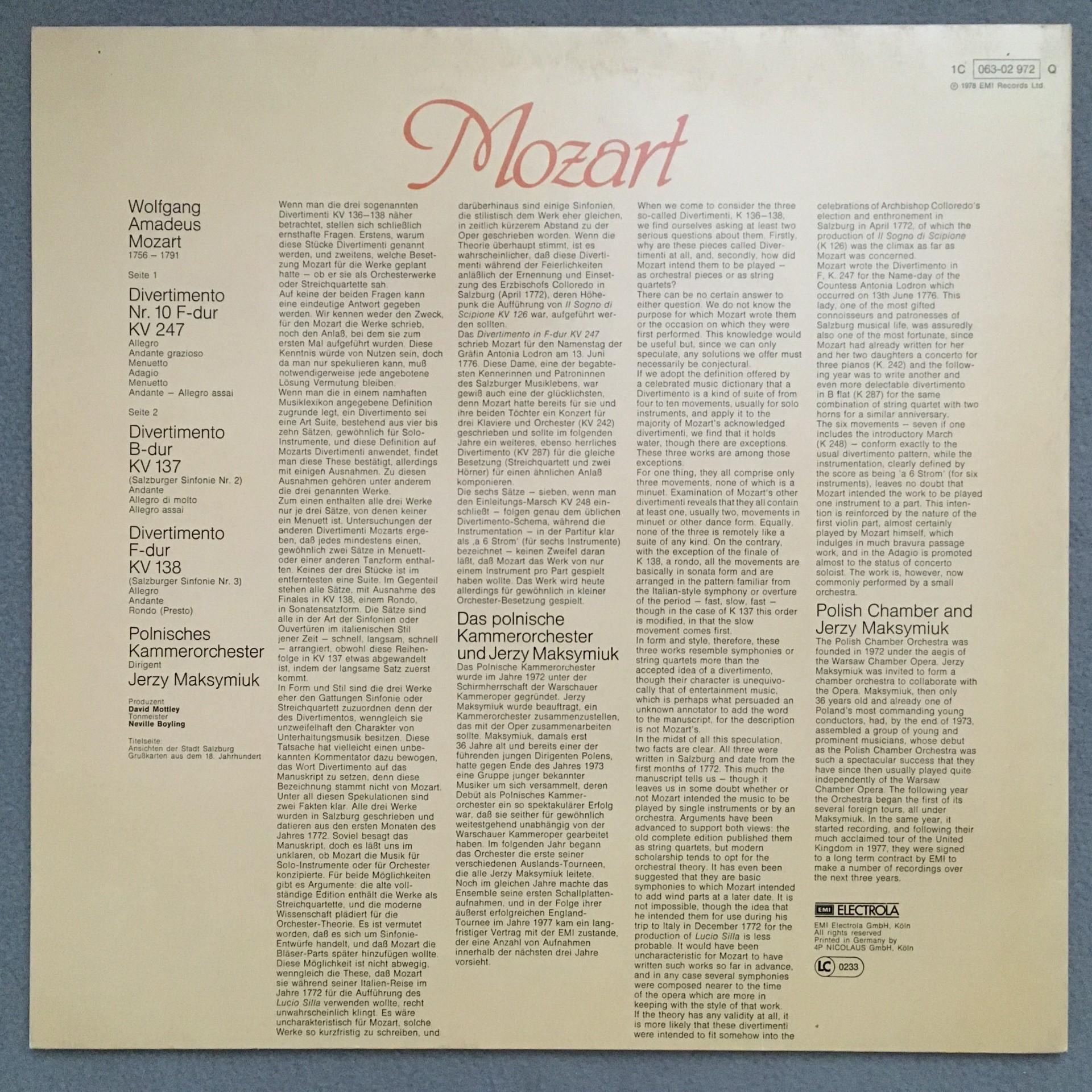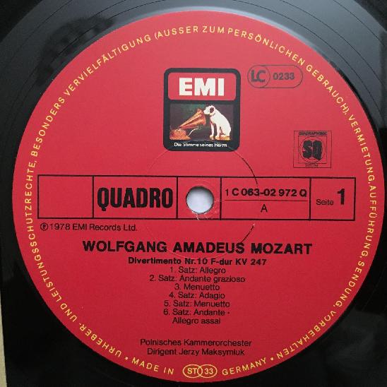 N840 Mozart Divertimenti for Strings Maksymiuk EMI 1C 063-02 972 Q Quadro