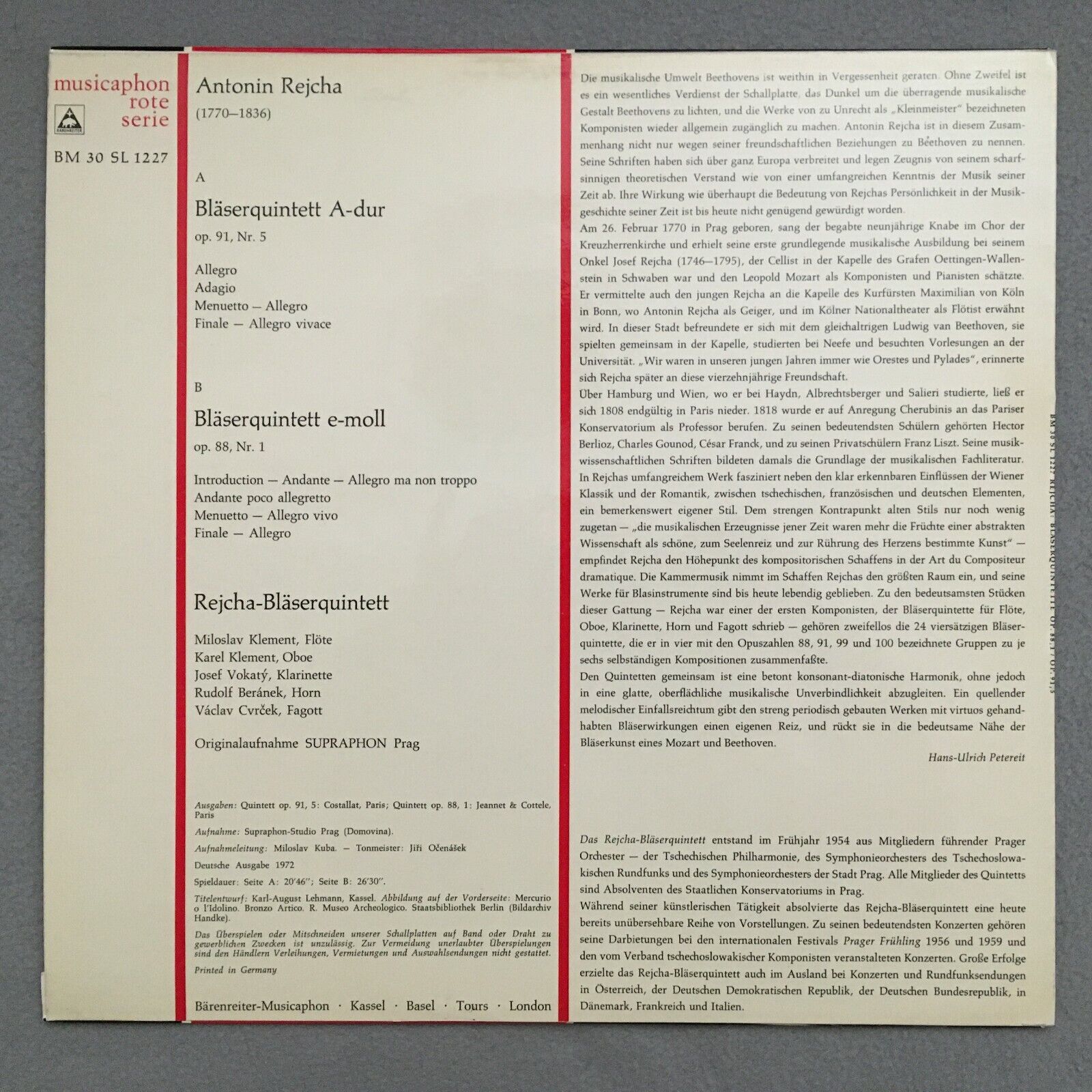 S693 Rejcha Wind Quintets Rejcha Wind Quintet Musicaphon BM 30 SL 1227 Stereo