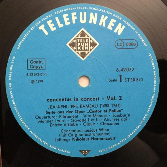 N881 Concentus in Concert Vol.2 Harnoncourt Telefunken 6.42072 AH Stereo