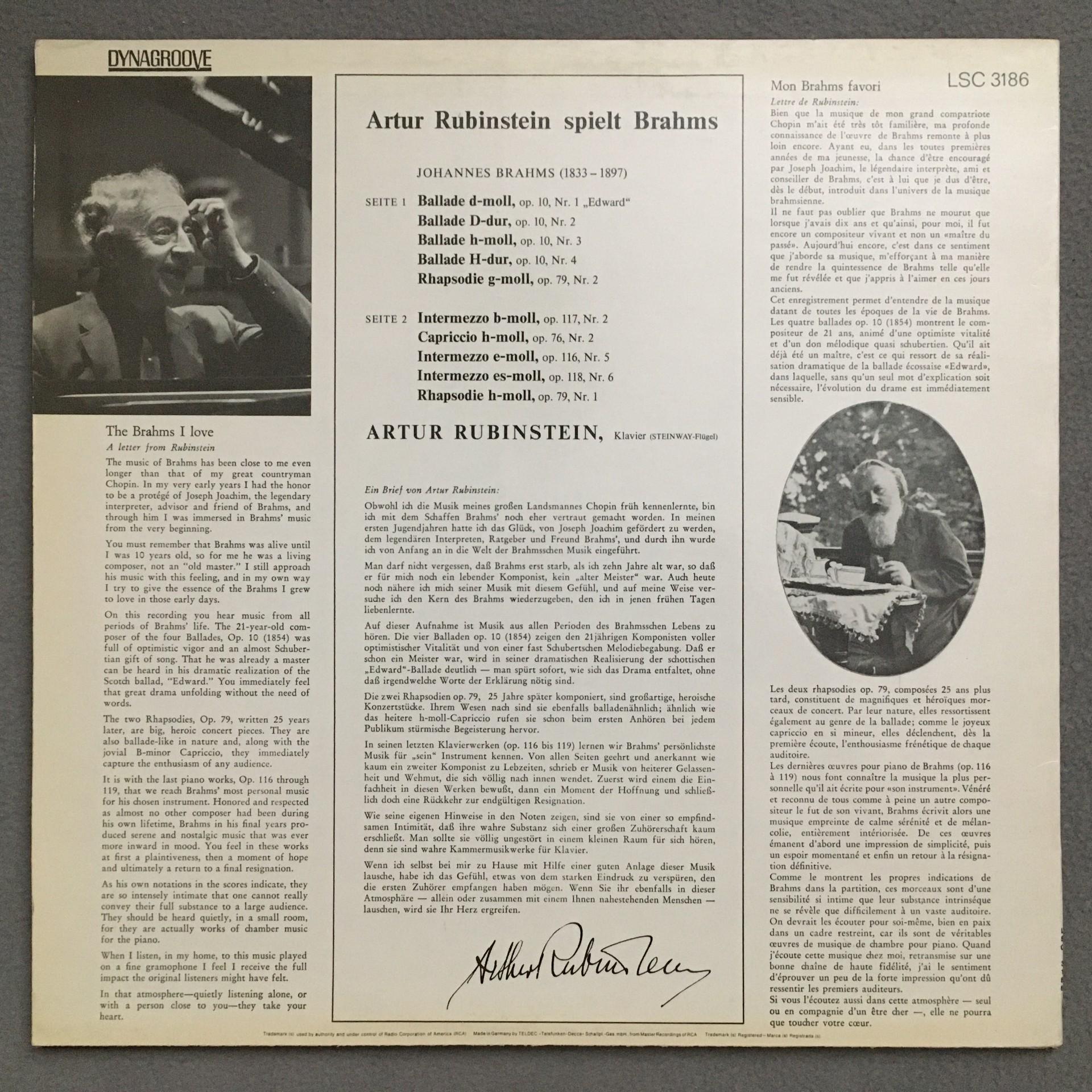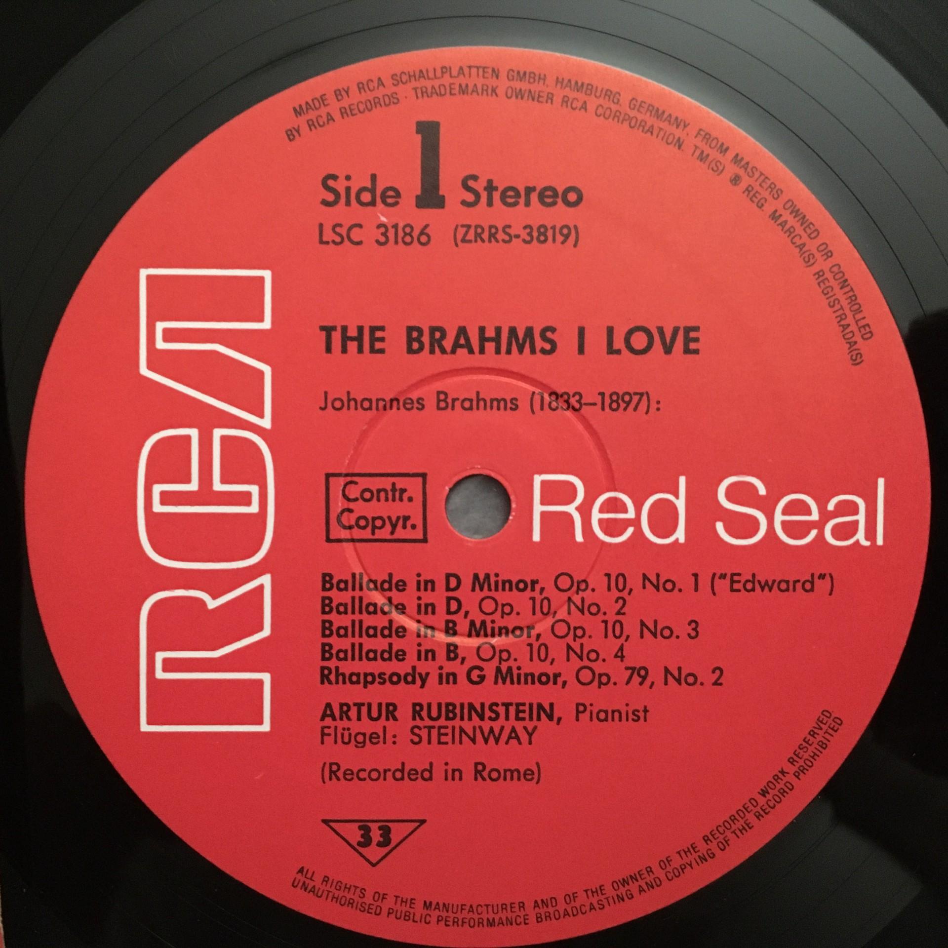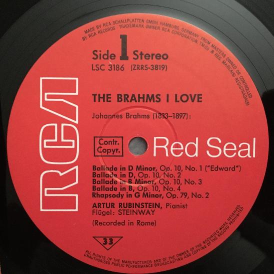 N883 Rubinstein plays Brahms Ballades Intermezzo Piano RCA LSC 3186 Stereo