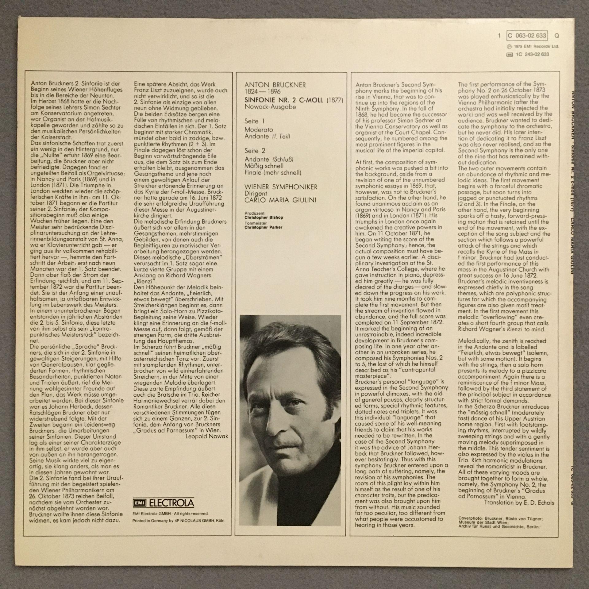 N884 Bruckner Symphony No.2 Giulini VSO EMI 1 C 063-02 633 Q Quadro