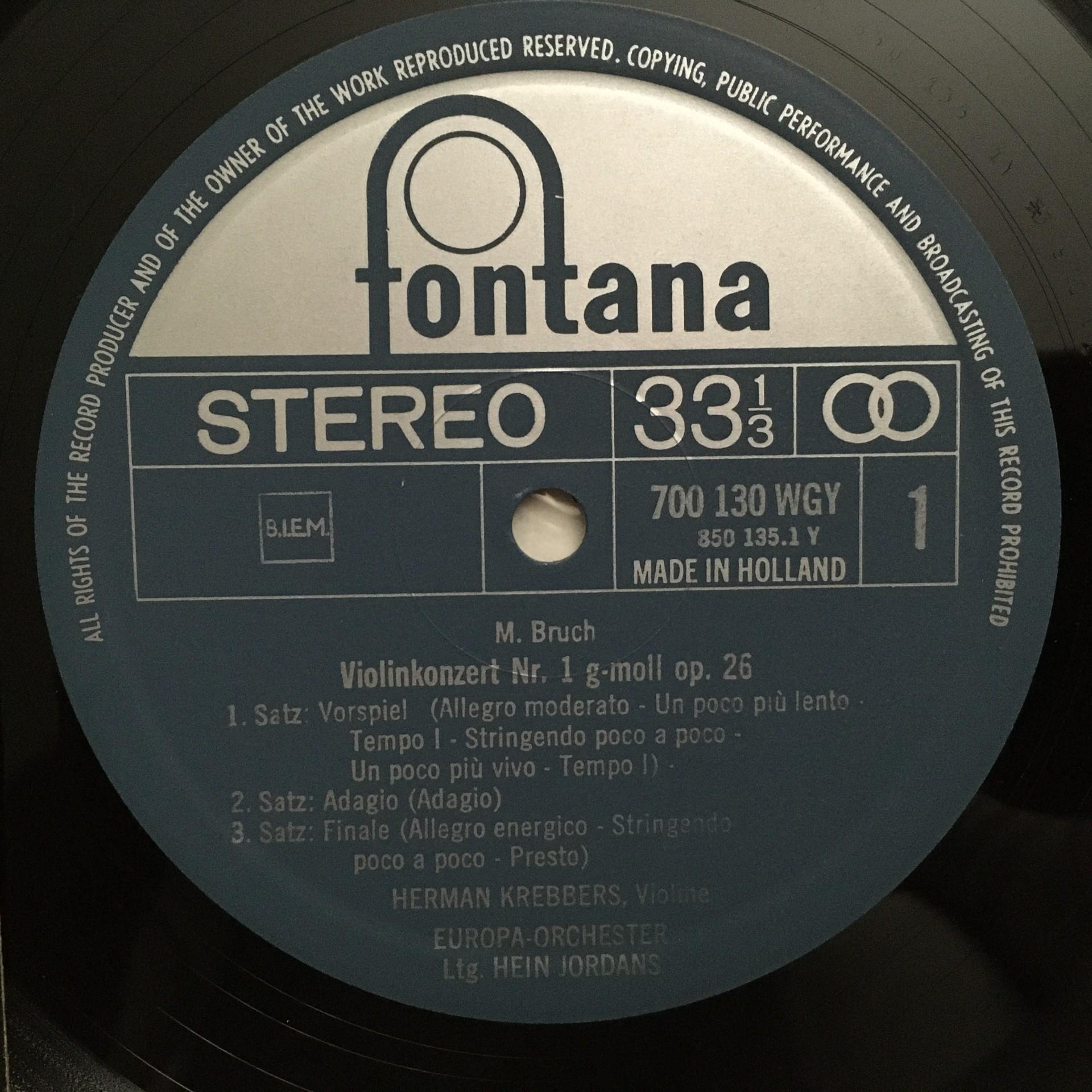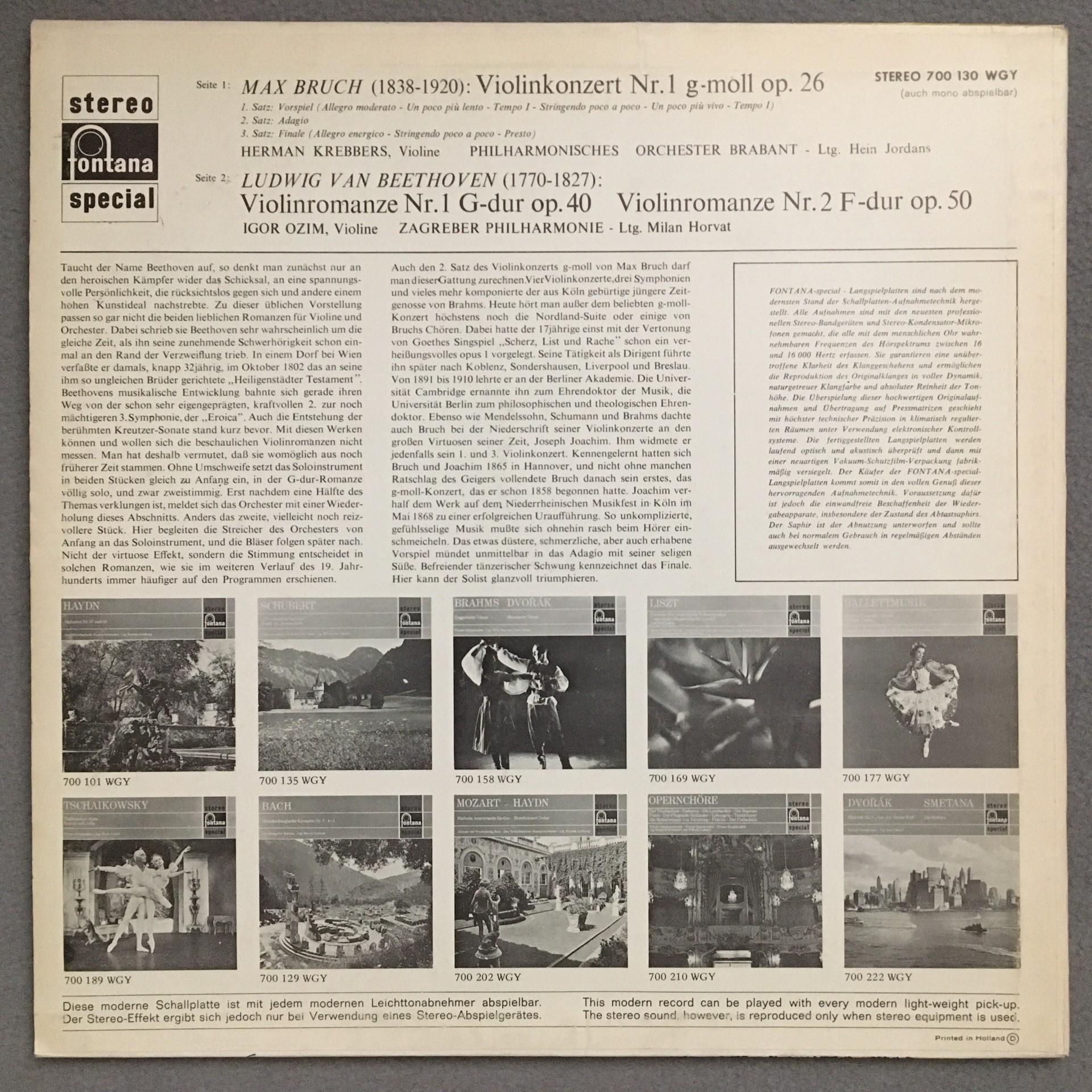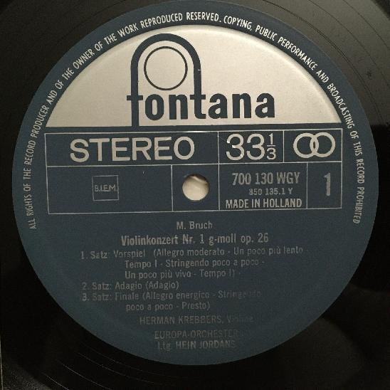 N892 Bruch Violin Concerto Beethoven Krebbers Horvat Fontana 700 130 WGY Stereo