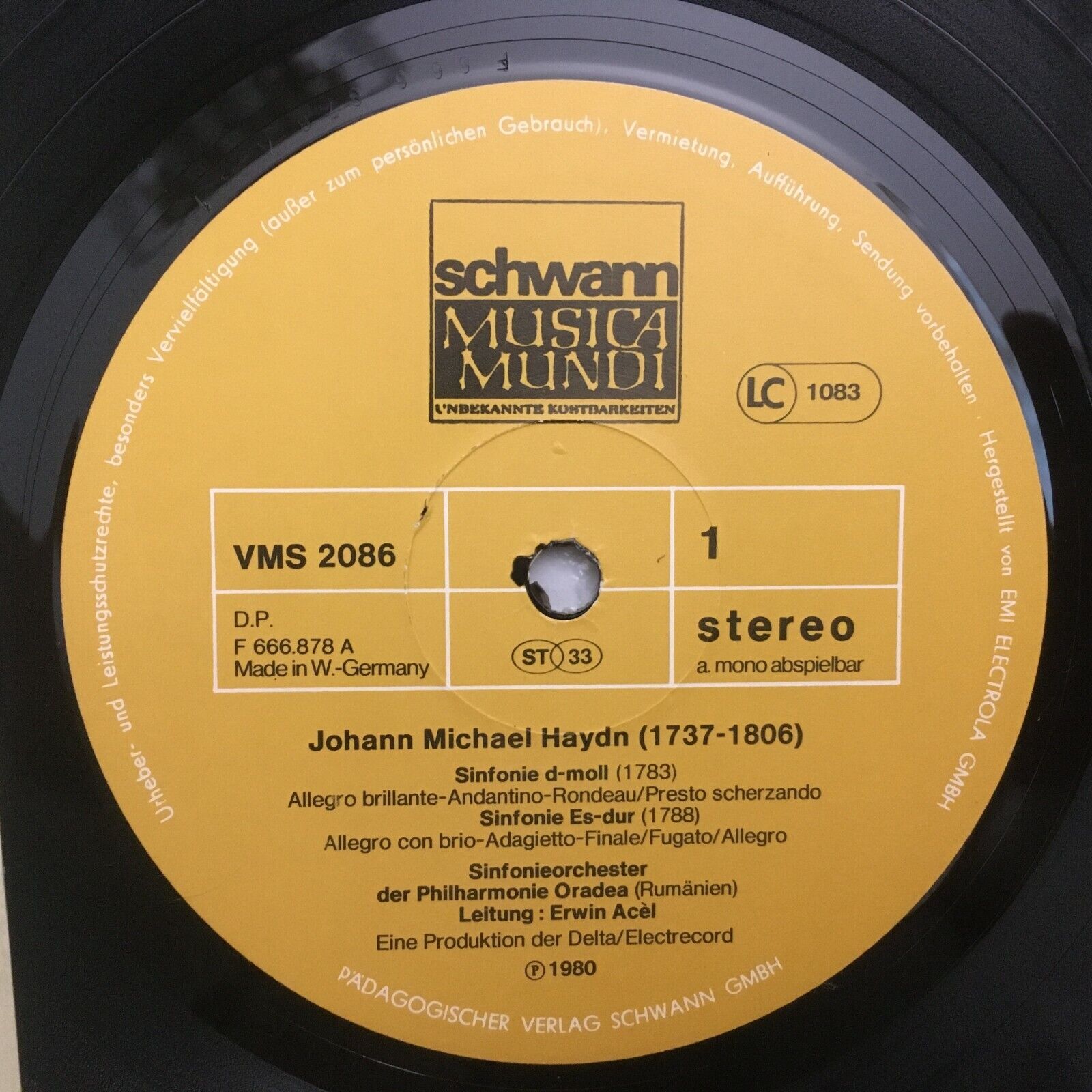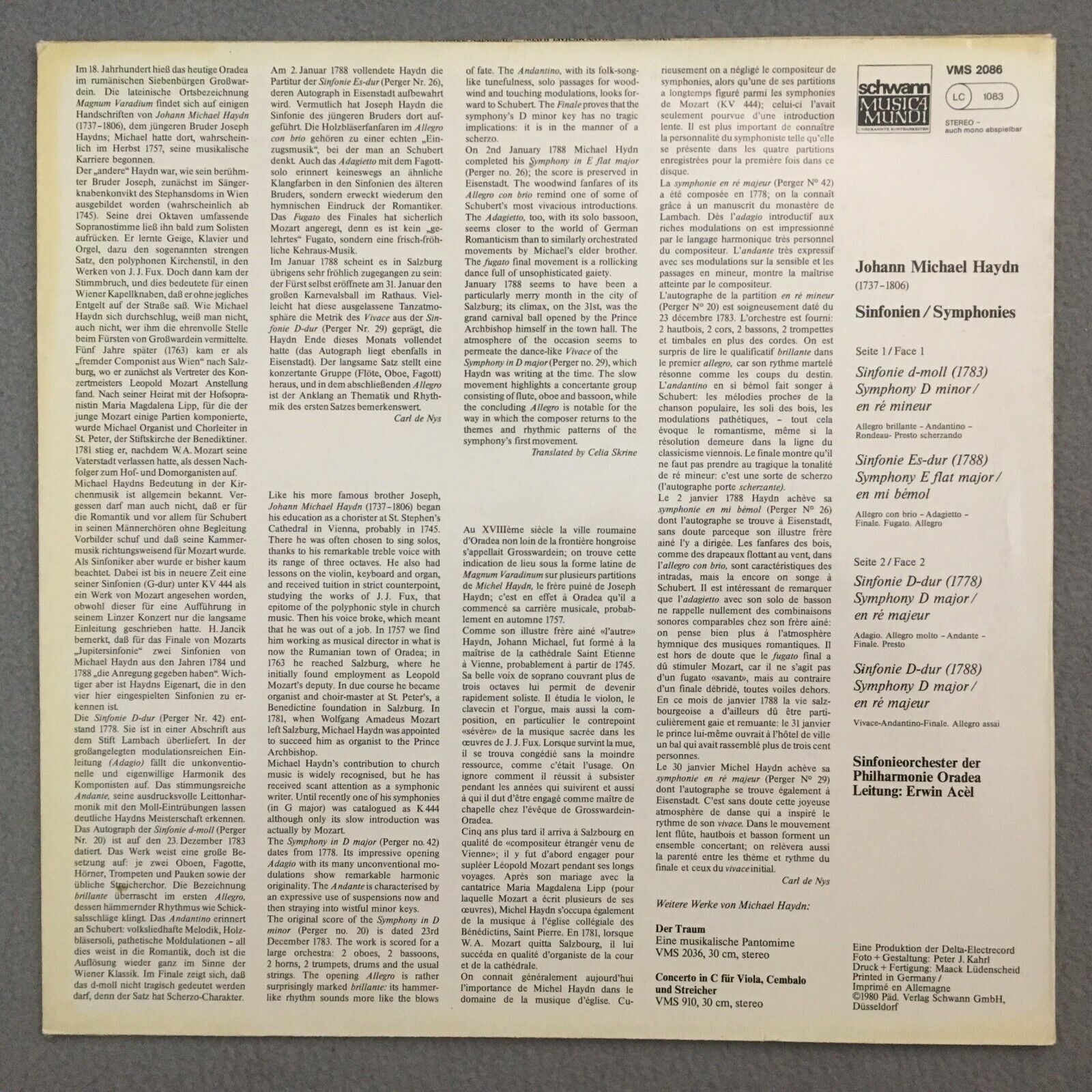 S143 J. M. Haydn Symphonies Acel Schwann VMS 2086 Stereo