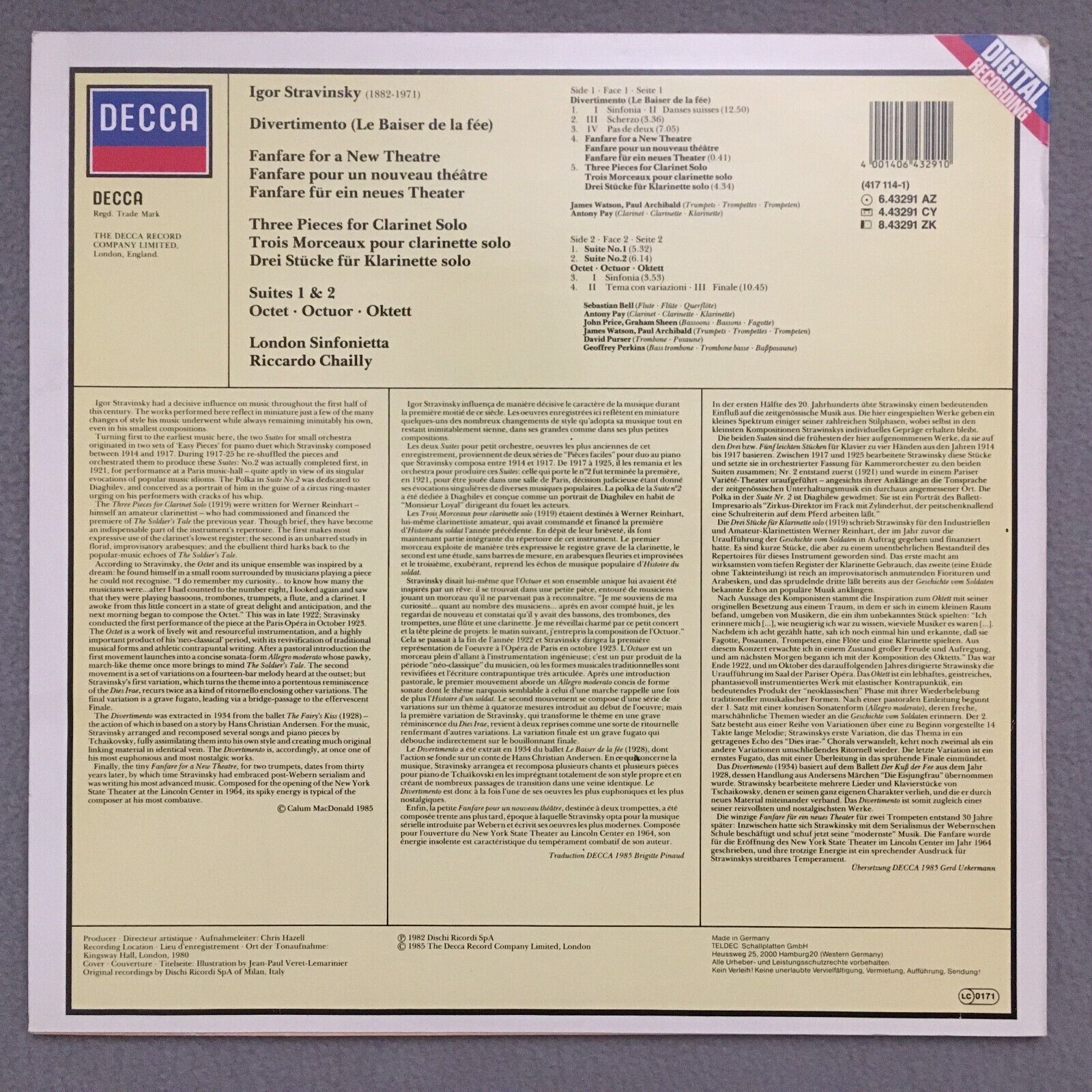 S912 Stravinsky Divertimento Suites Chailly DECCA 6.43291 AZ Digital Stereo