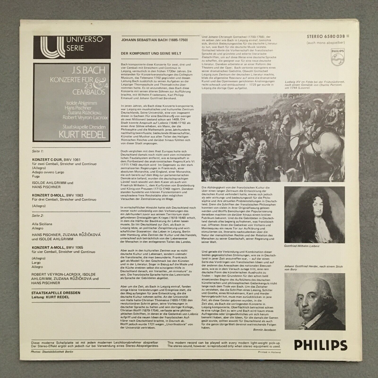 S690 Bach Harpsichord Concertos Ahlgrimm Pischner Redel Philips 6580 038 Stereo