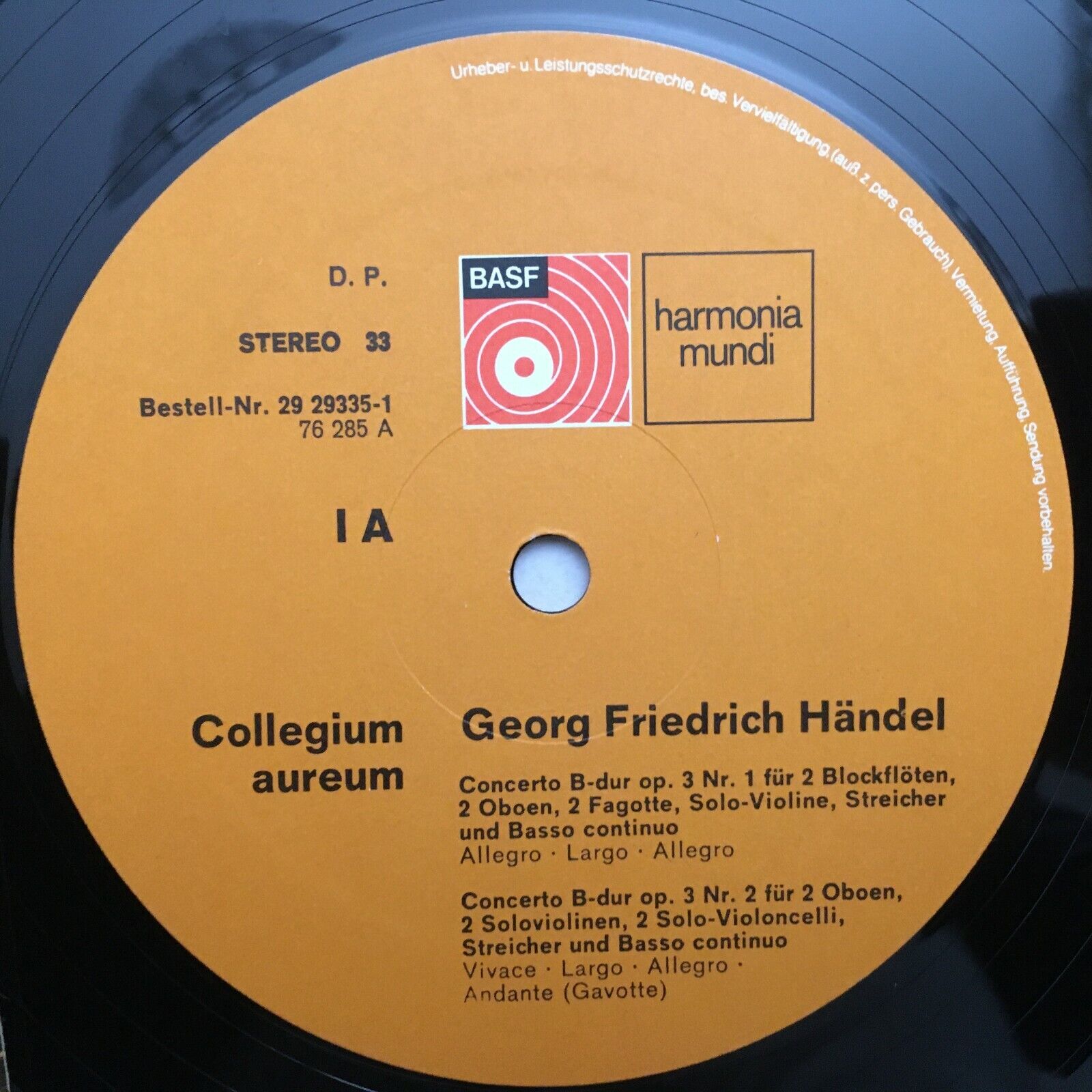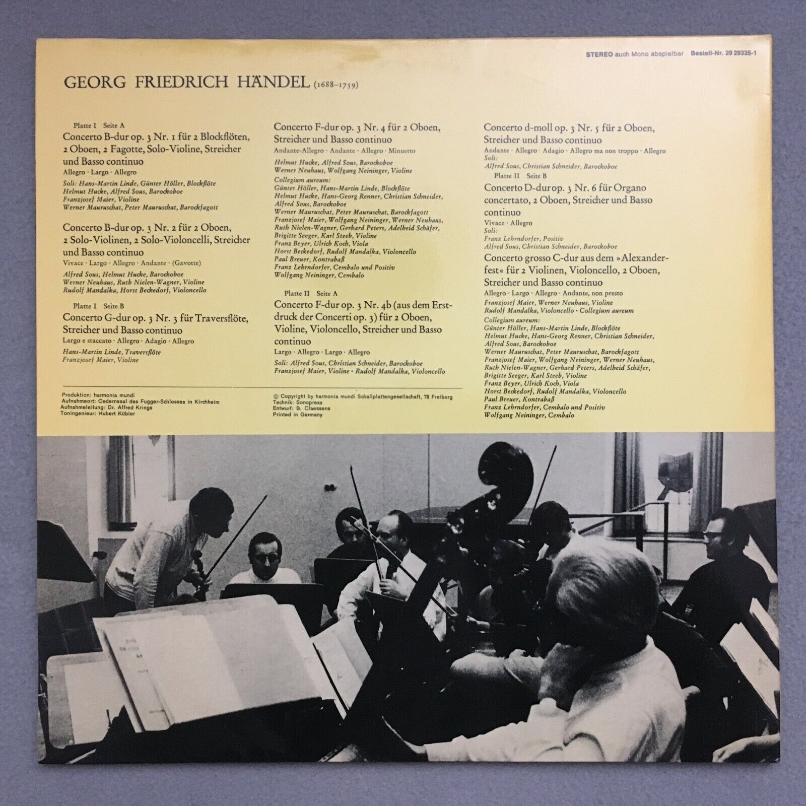 S688 Handel Concerti Grossi Collegium Aureum Linde Koch 2LP HM 29 29335-1 Stereo