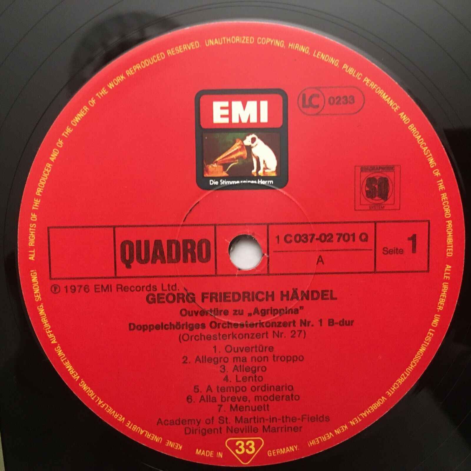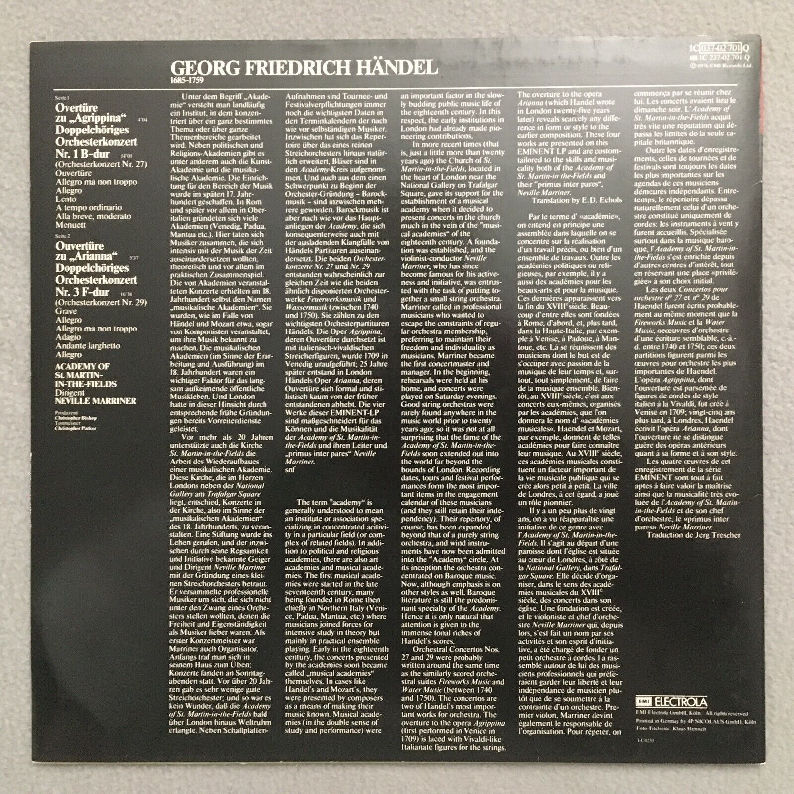 S909 Handel Overtures Concertos Overtures Marriner EMI 1C 037-02 701 Q Quadro