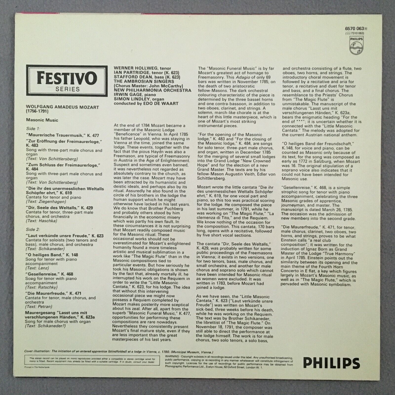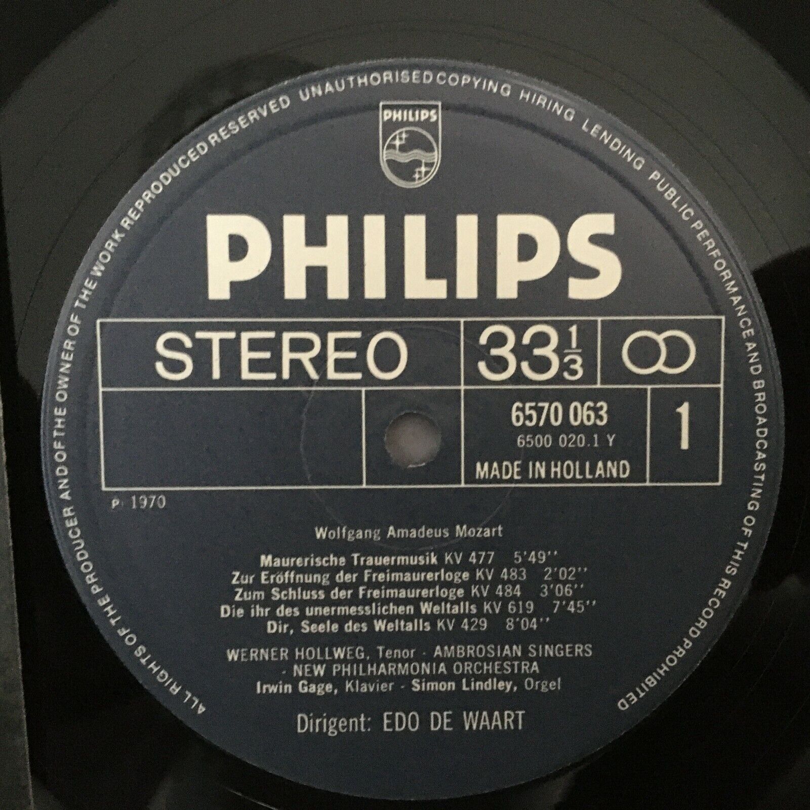 S907 Mozart Masonic Music Hollweg Partridge De Waart Philips 6570 063 Stereo