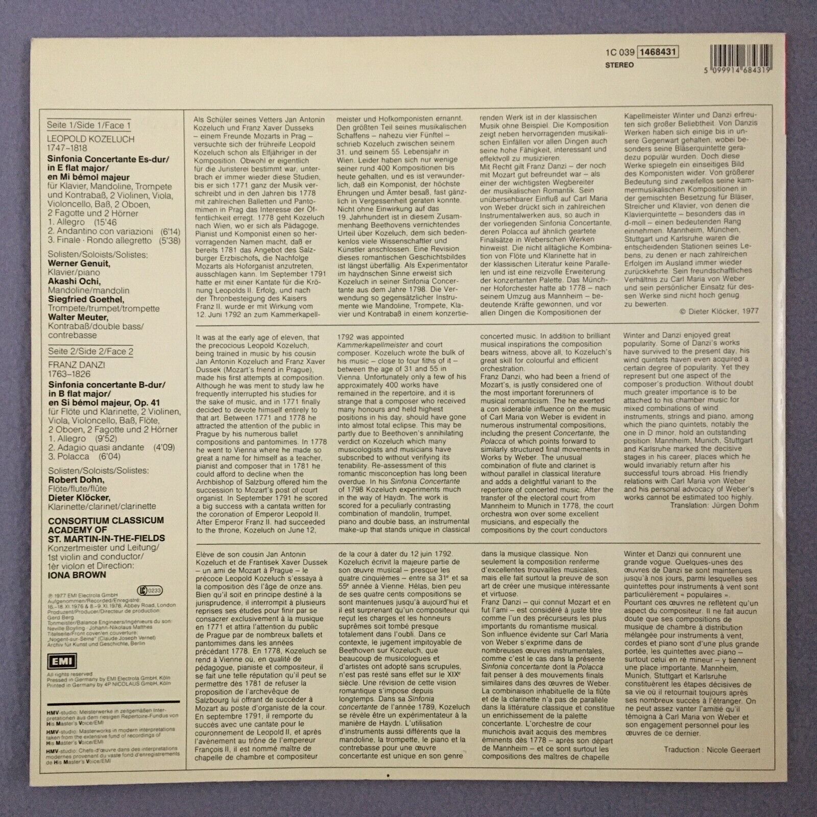 S905 Kozeluch Danzi Symphonies Klöcker Genuit Brown EMI 1C 039 1468431 Stereo