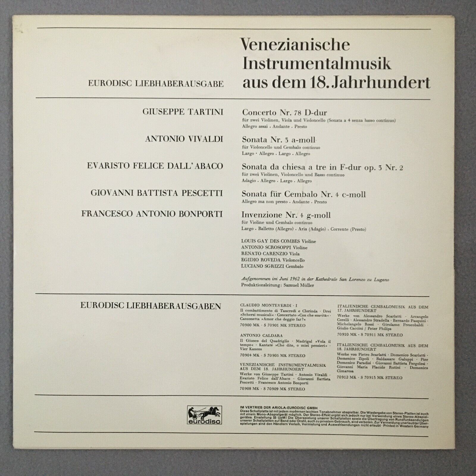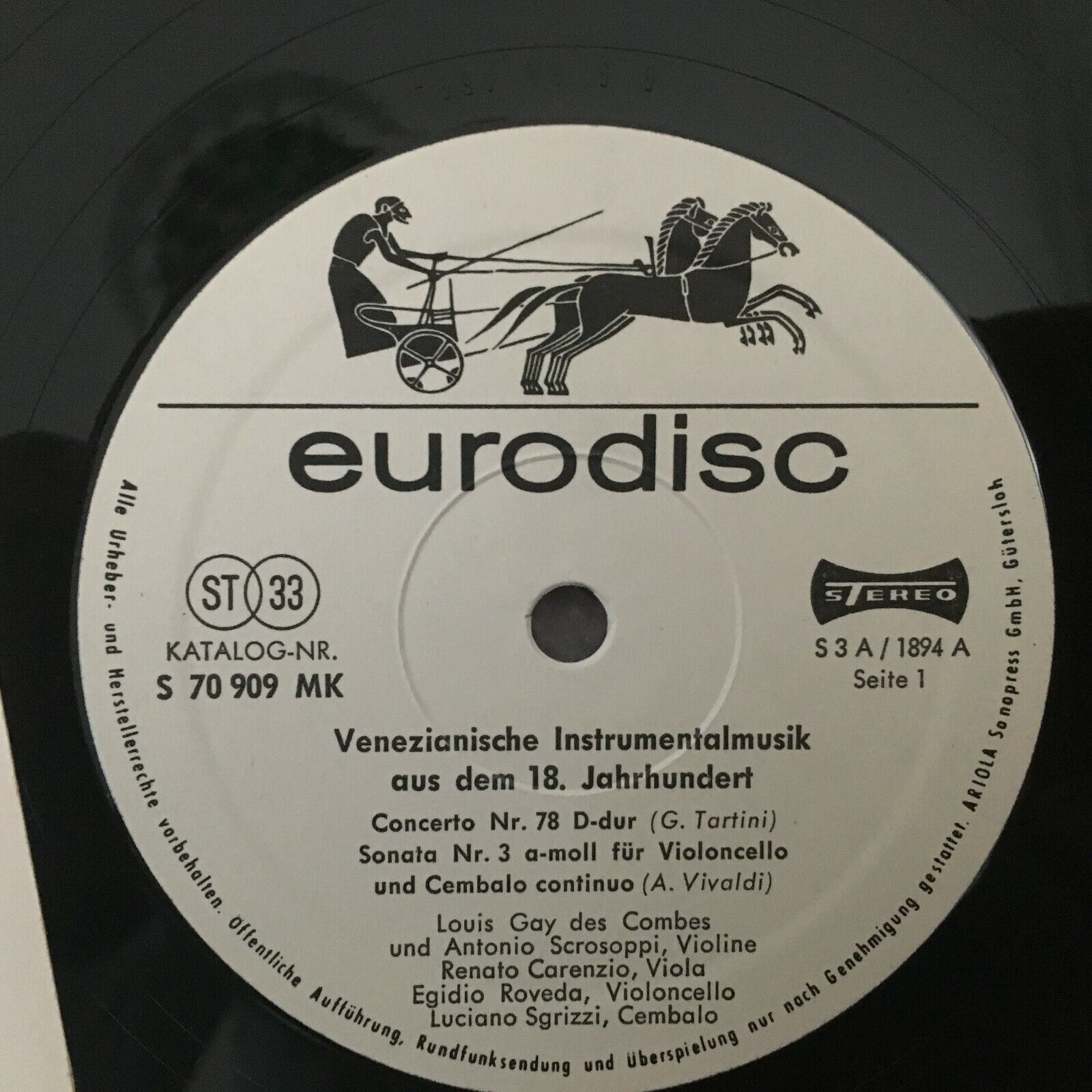 S904 Venetian Instrumental Music Tartini Vivaldi Eurodisc 70 908/09 MK Stereo