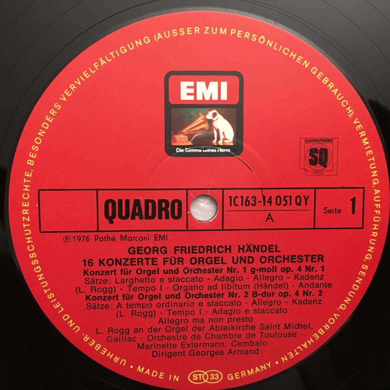 C384 Handel 16 Organ Concertos Rogg Armand 4LP EMI 1C 163-14 051/54 QY Quadro