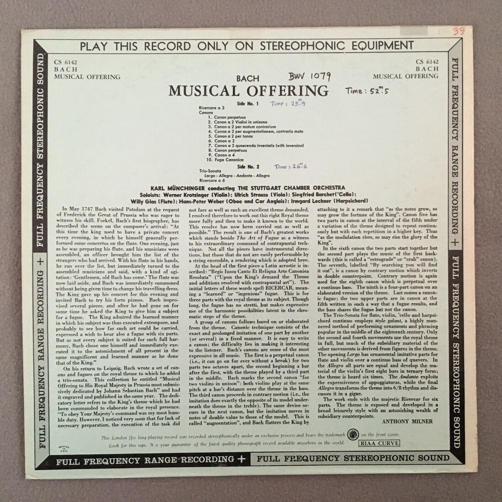 Y192 Bach Musical Offering Munchinger London CS 6142 Stereo BB Blue Back 1E/1E
