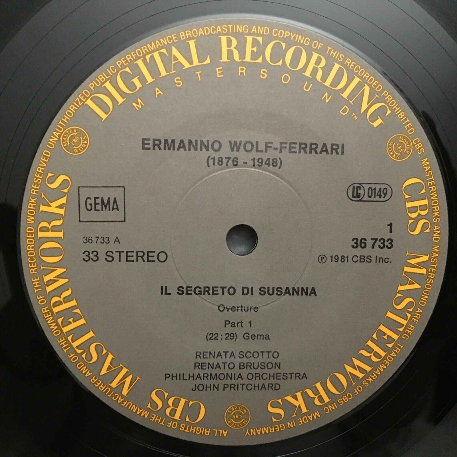 C383 Wolf-Ferrari Susanna's Secret Scotto Bruson Pritchard 1LP CBS 36733 Digital