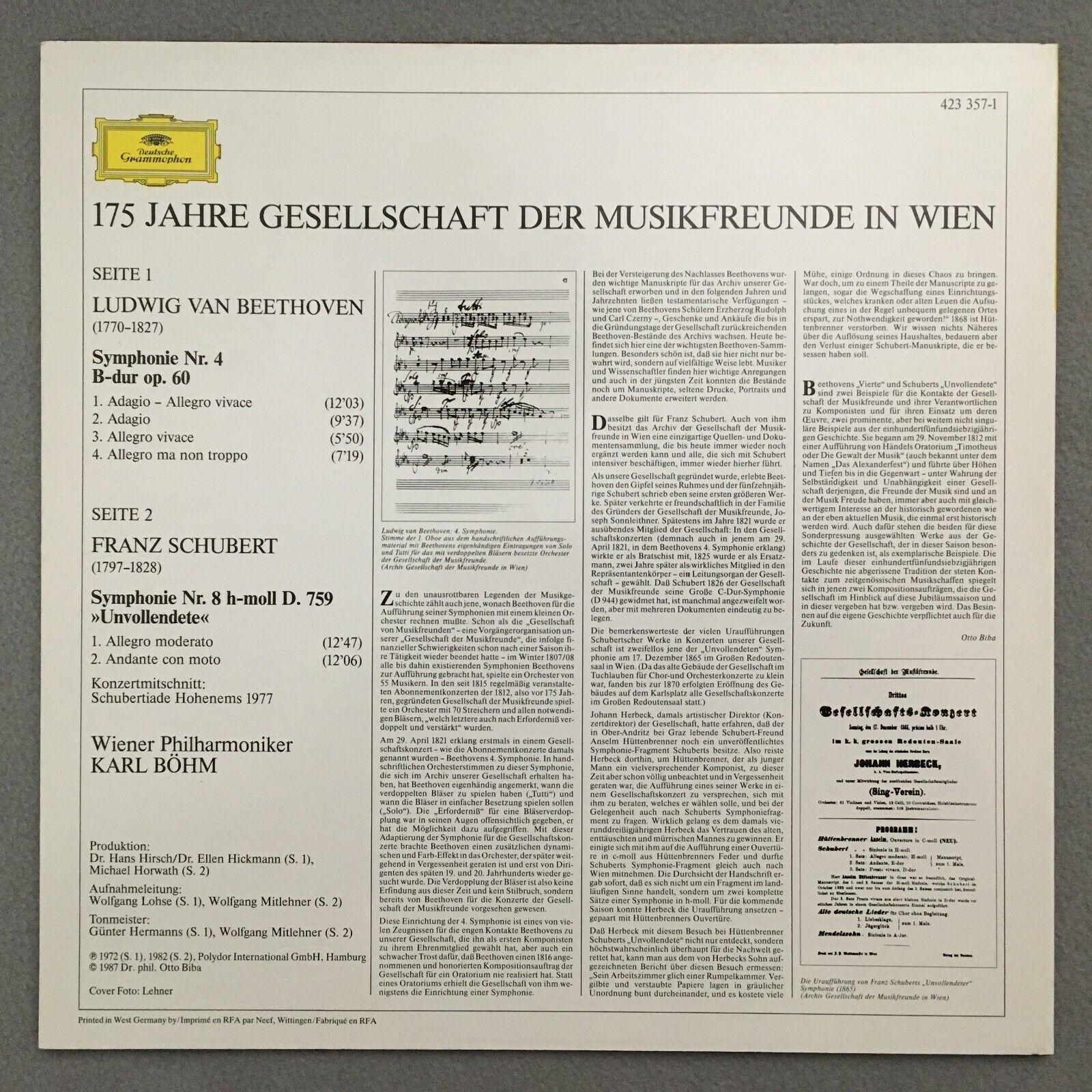 S683 Beethoven Schubert Symphonies Bohm VPO DGG 423 357-1 Stereo