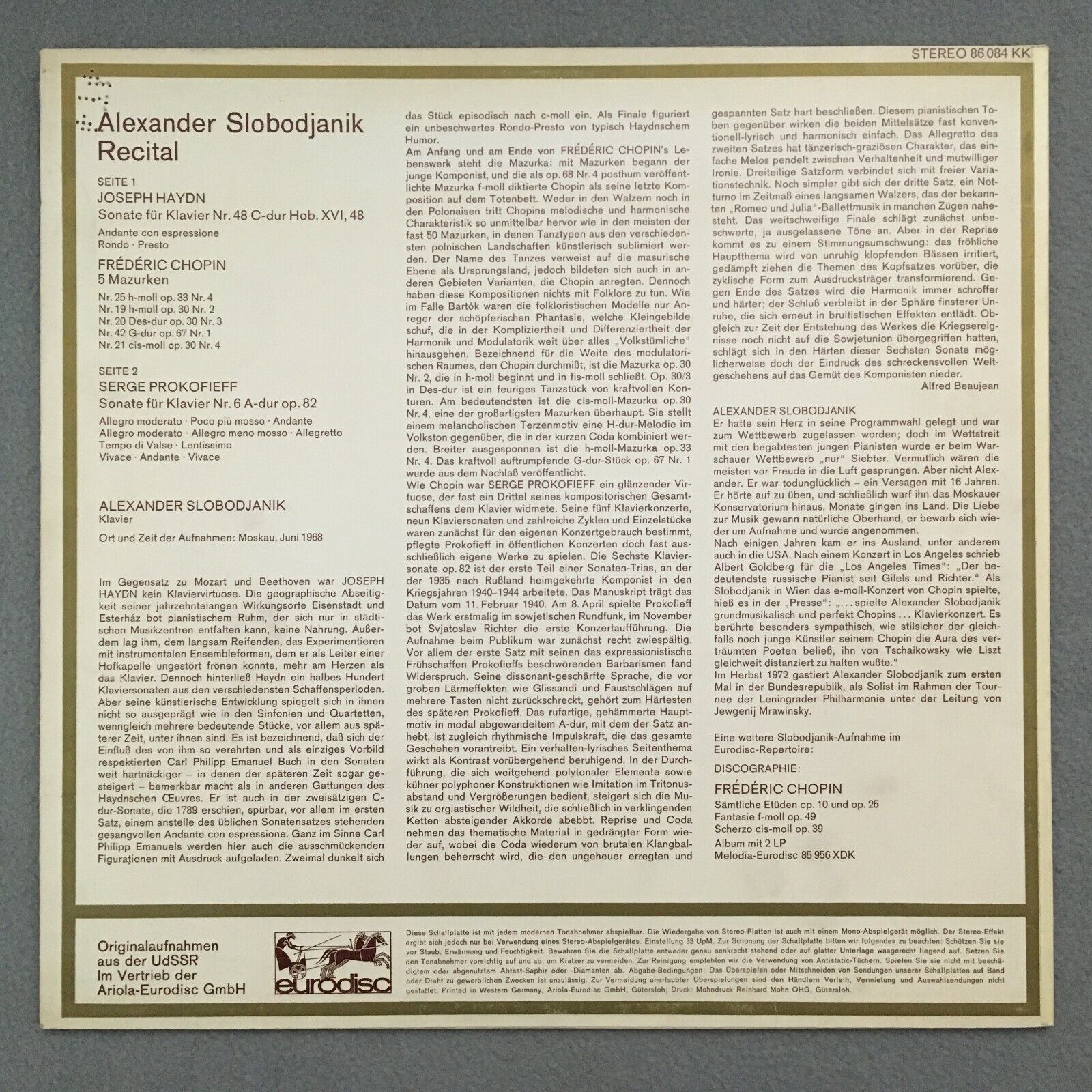 S680 Haydn Sonata Chopin Mazurkas Slobodjanik Eurodisc 86 084 KK Stereo