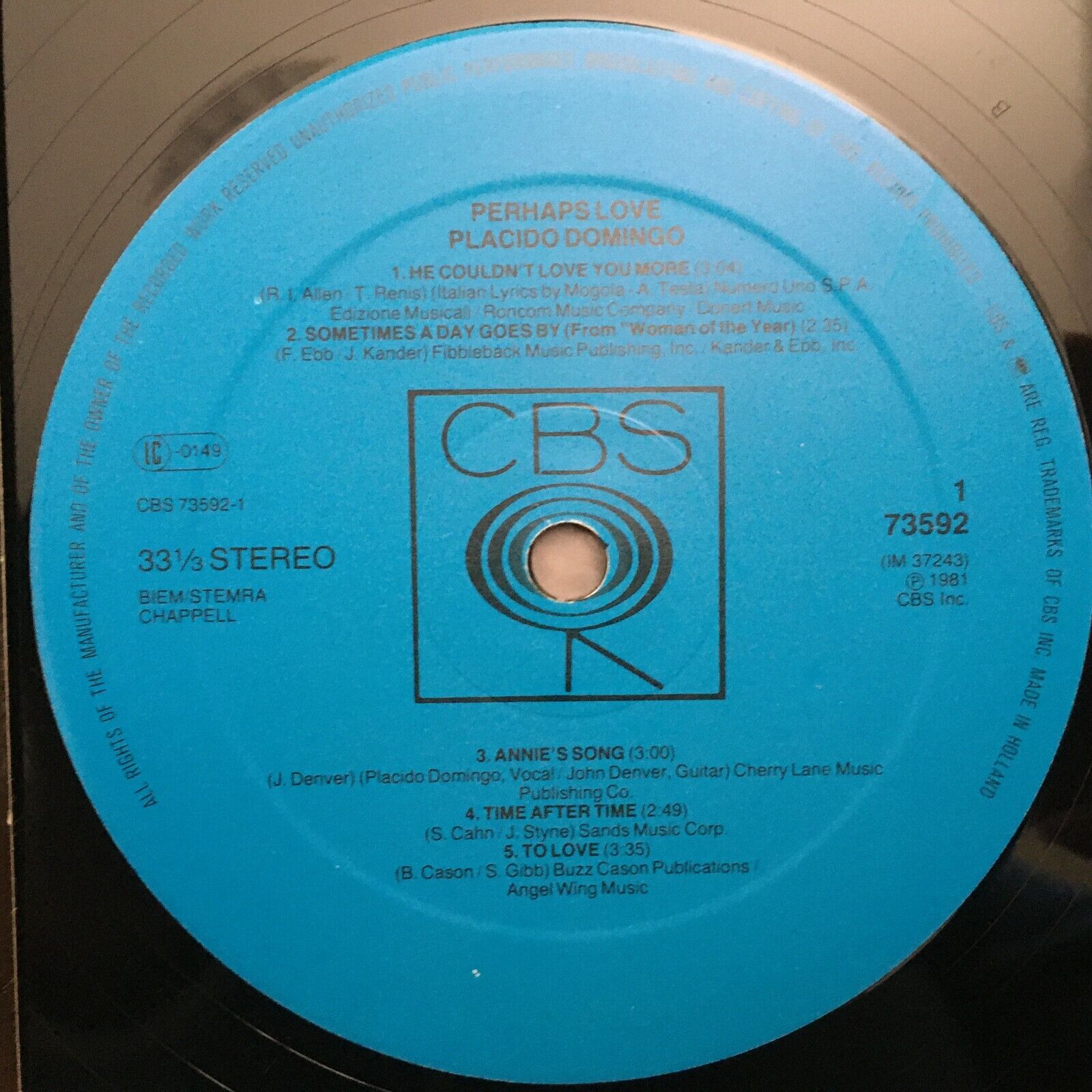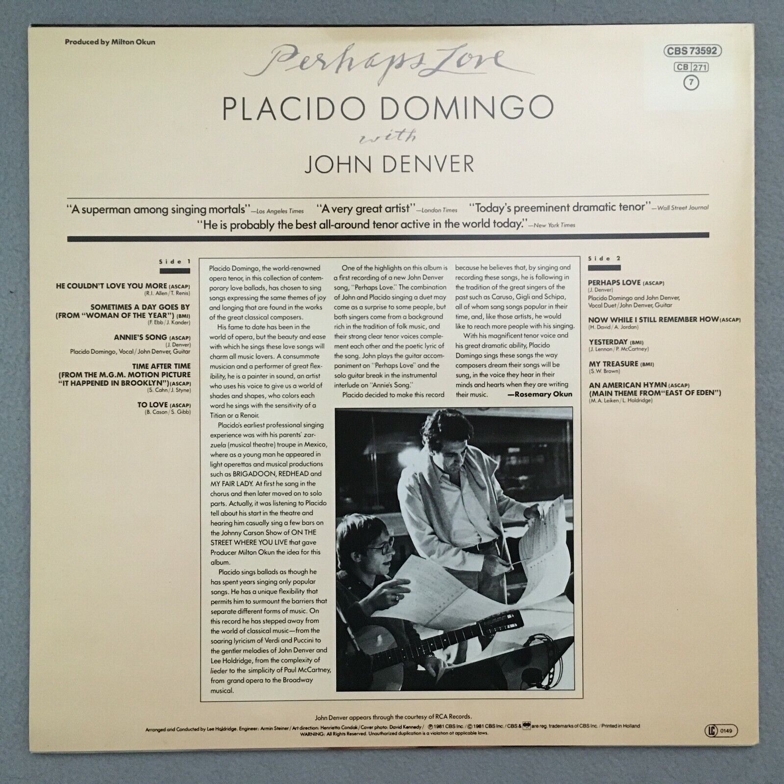 S678 Perhaps Love Placido Domingo with John Denver CBS 73592 Stereo