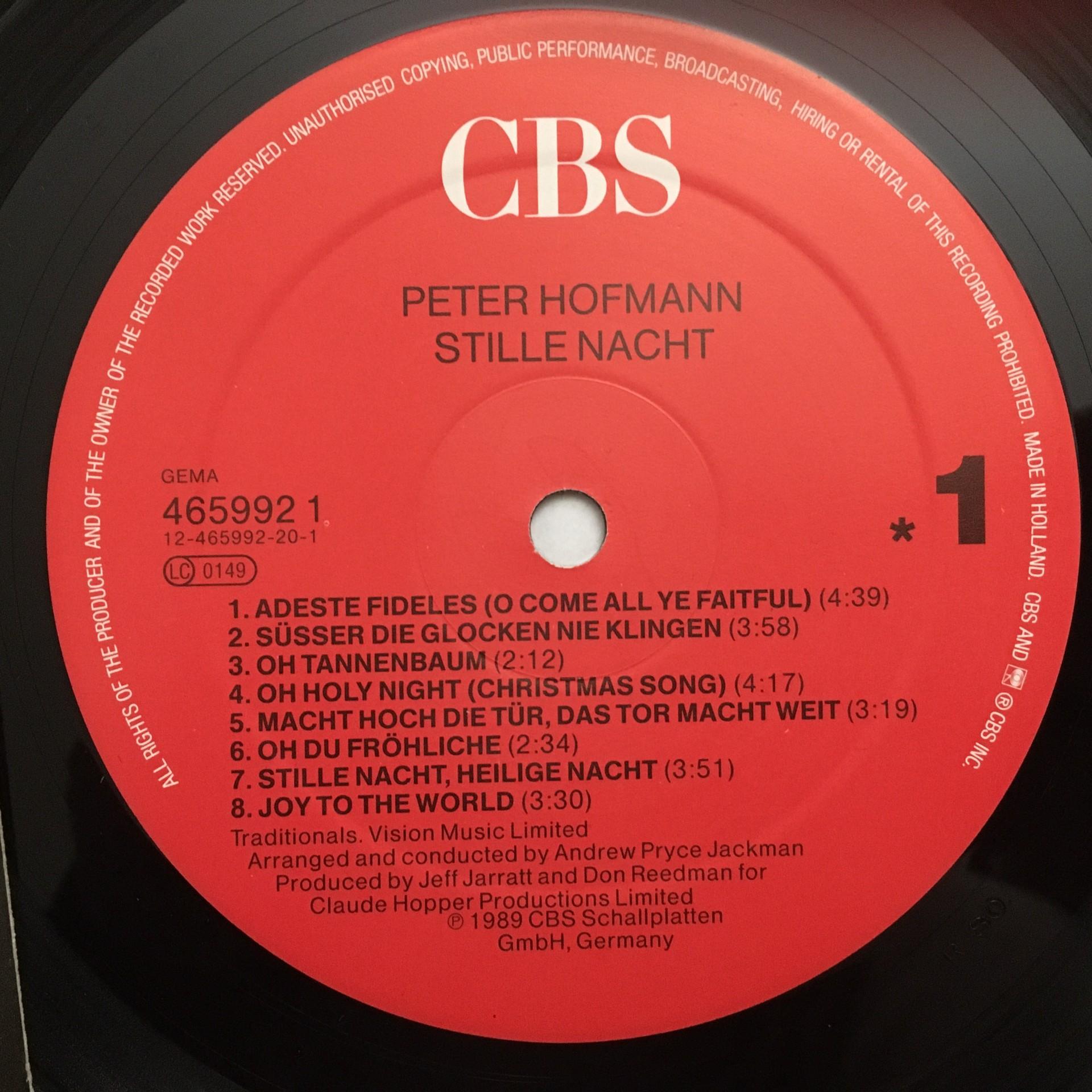 N899 Peter Hofmann Christmas Songs Stille Nacht CBS 465 992 1Stereo