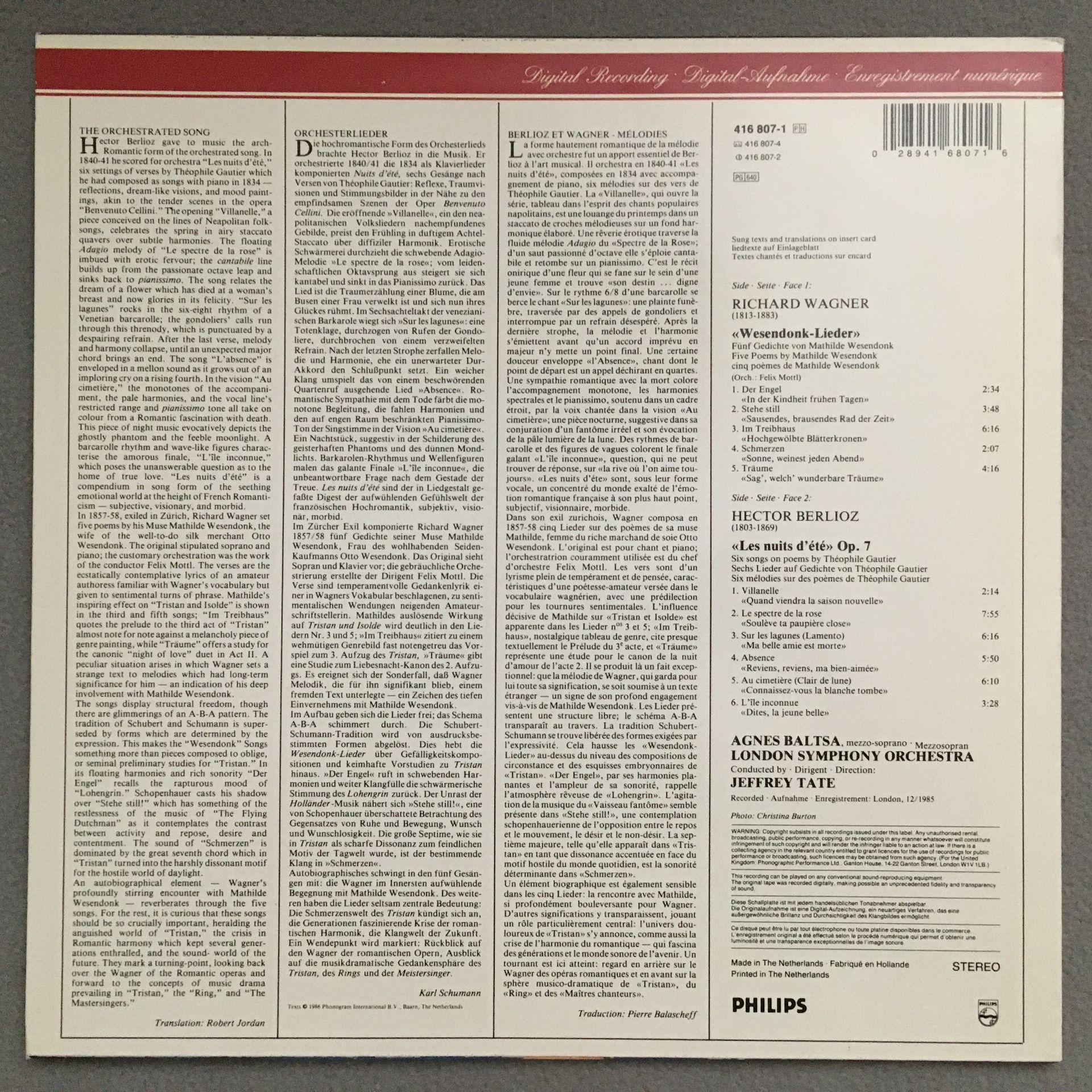 N904 Wagner Wesendonck Berlioz Baltsa Tate Philips 416 807-1 Digital Stereo