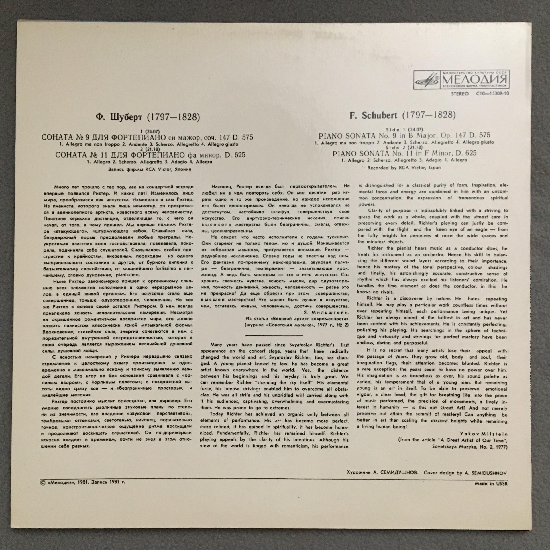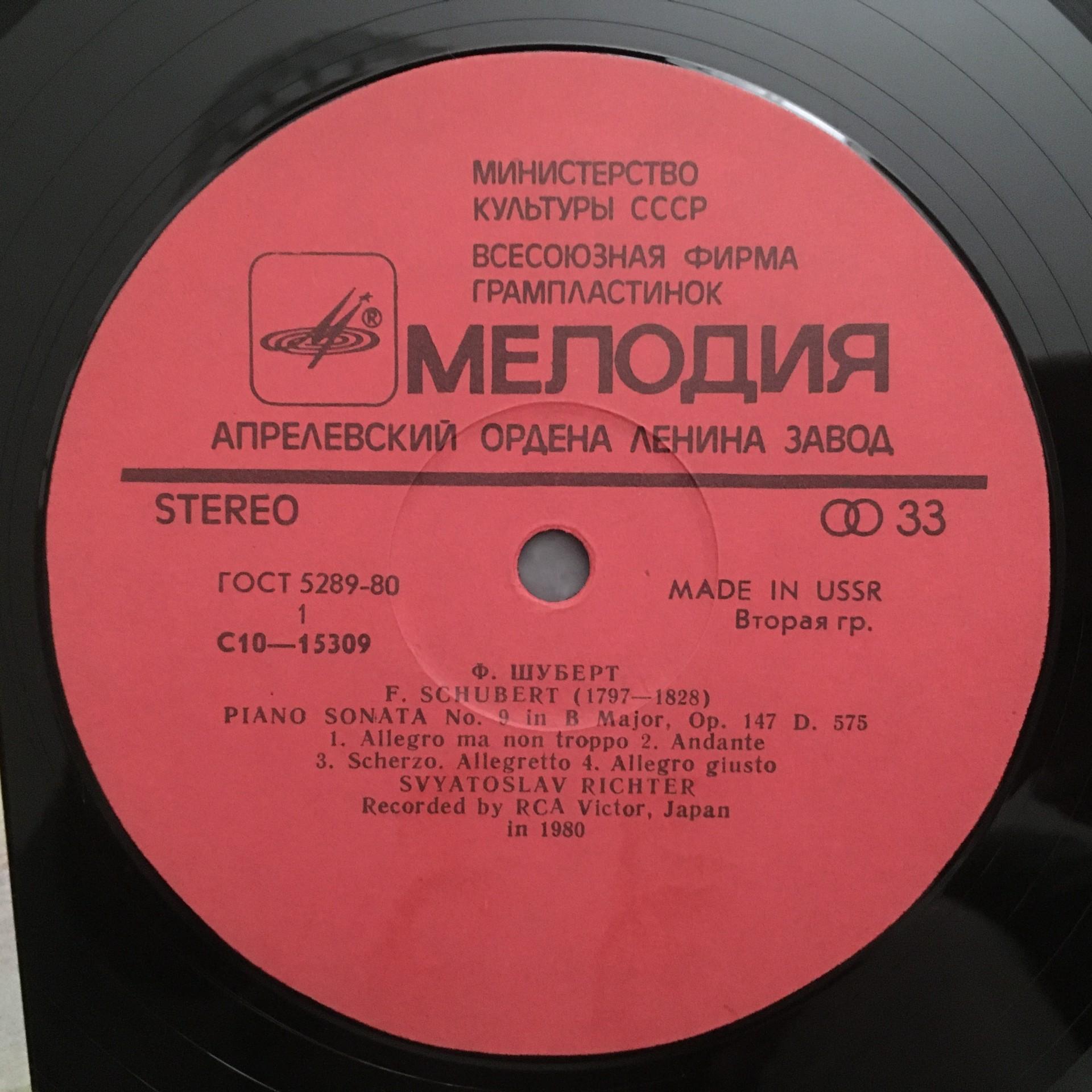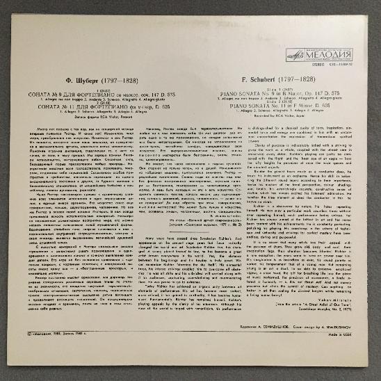 N914 Schubert Piano Sonatas No.9 & 11 Melodiya C10-15309-10 Stereo