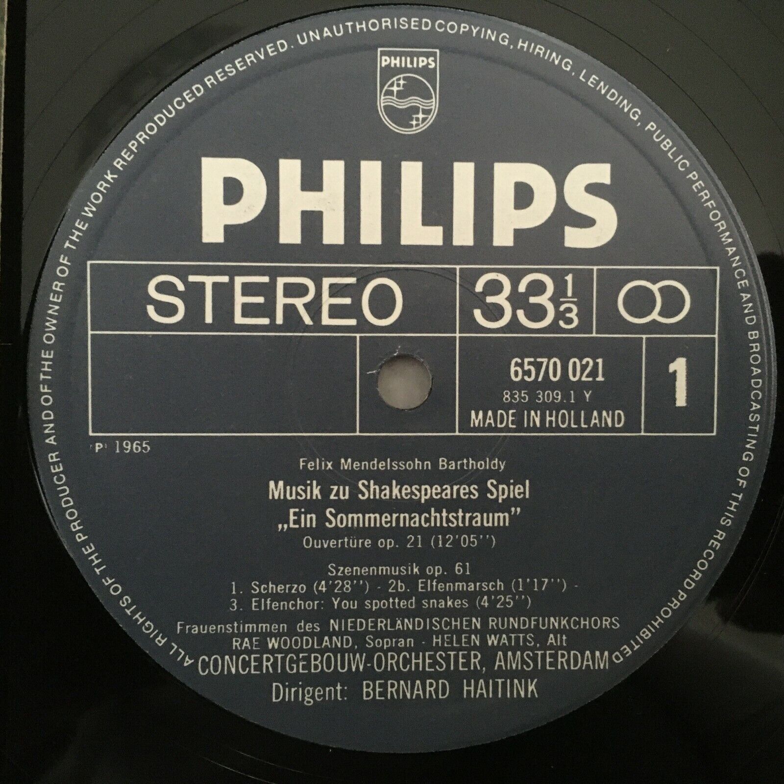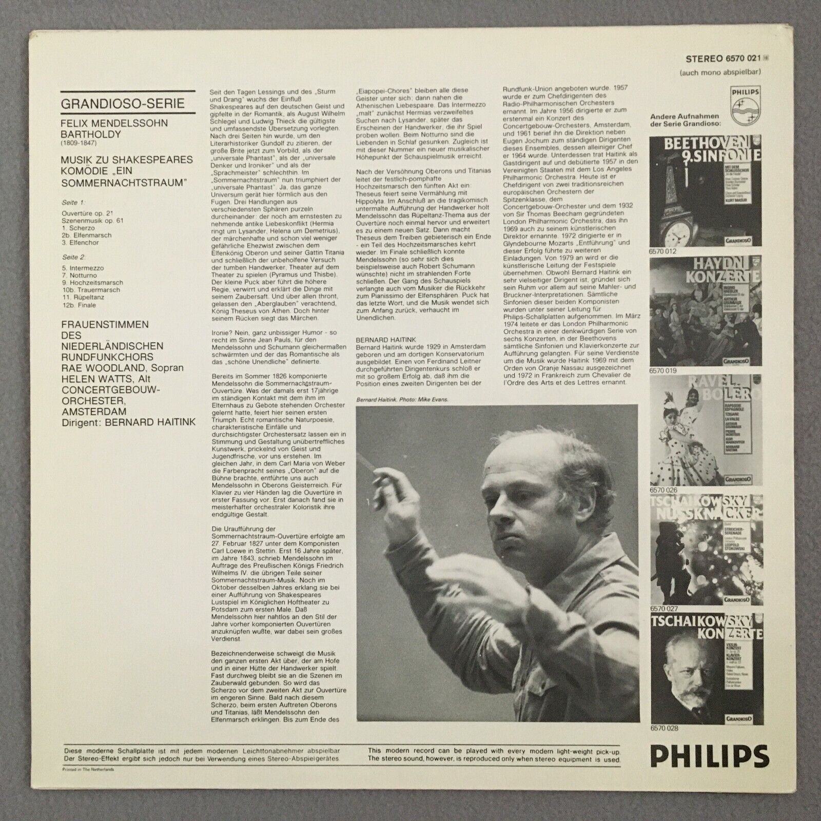 S900 Mendelssohn Summernights Dream Watts Haitink Philips 6570 021 Stereo