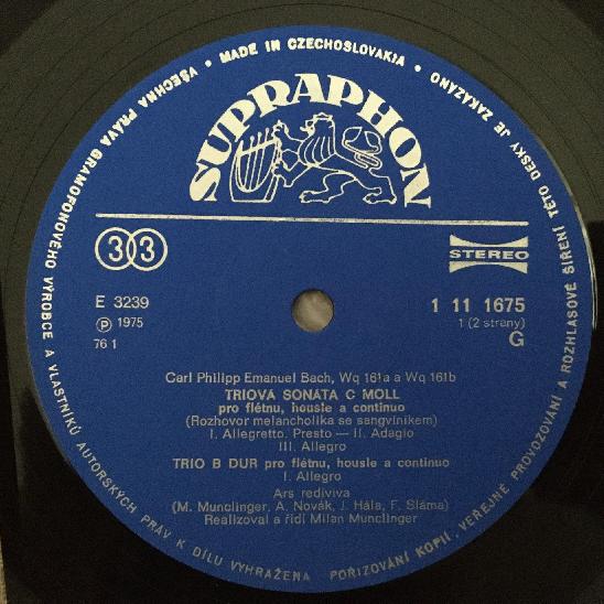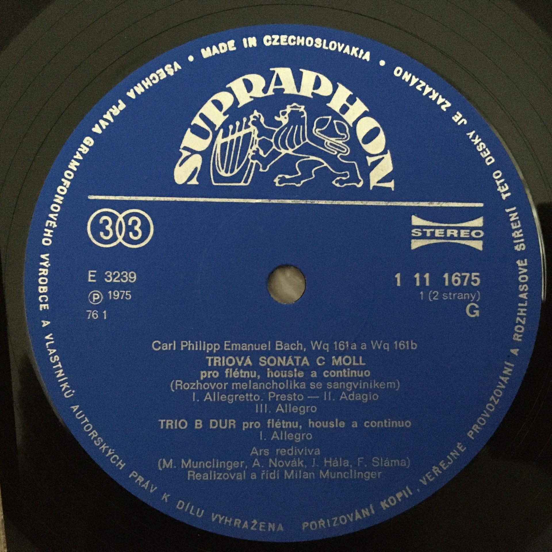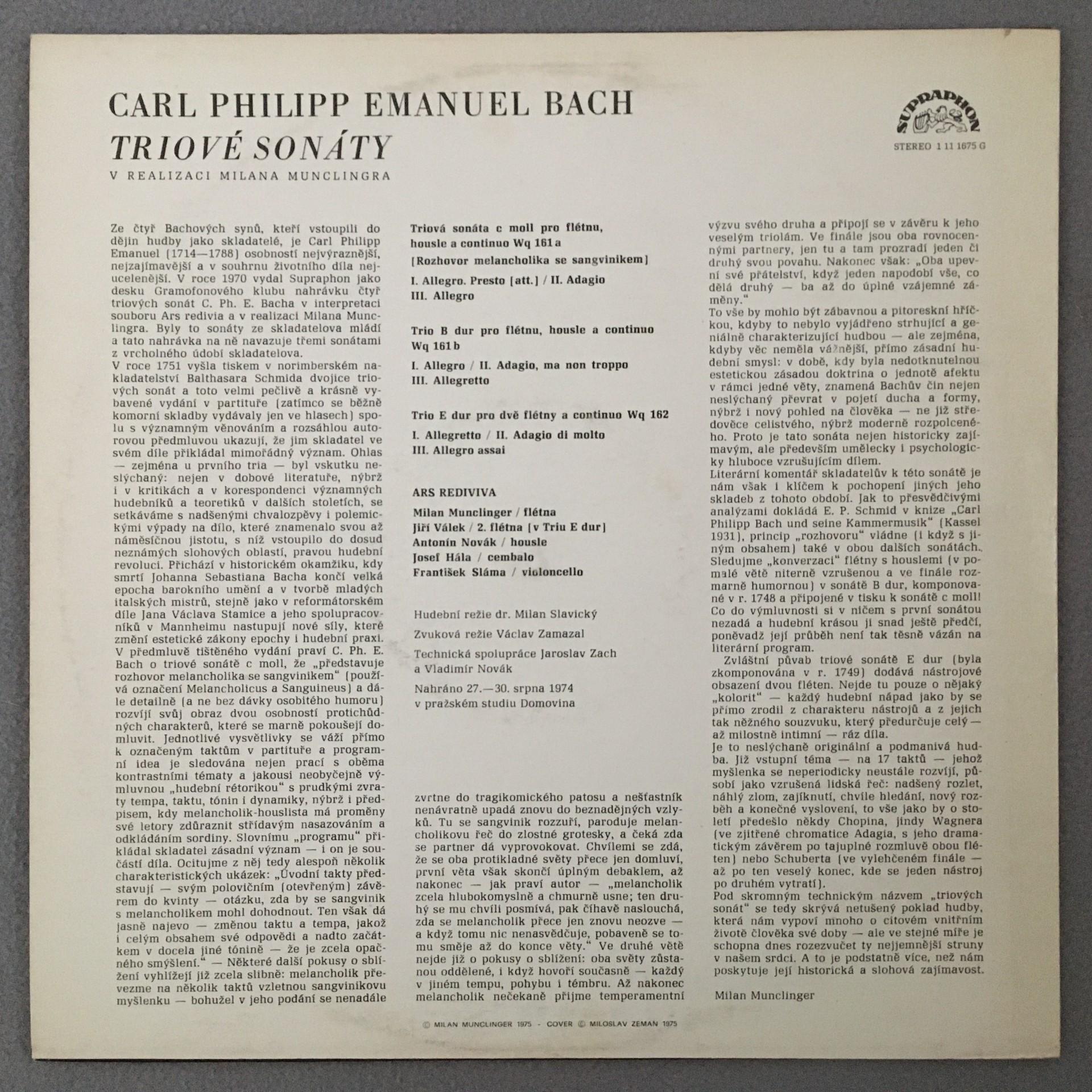 N918 C.P.E. Bach Trio Sonata Trios Ars Rediviva Supraphon 1 11 1675 G Stereo