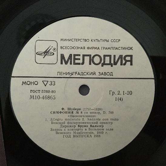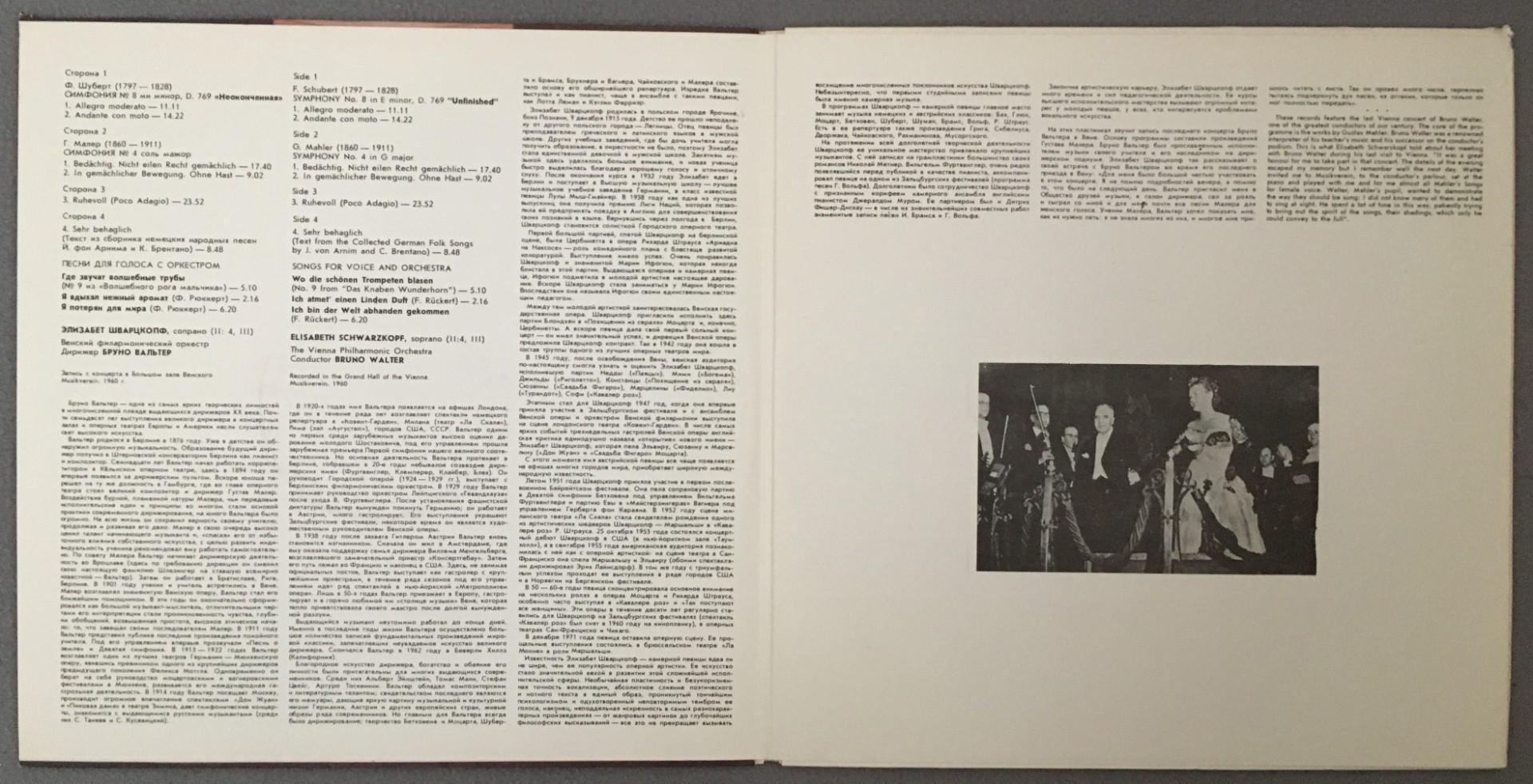 N928 Schubert Mahler Symphonies Walter VPO 2LP Melodiya M10 46865 002