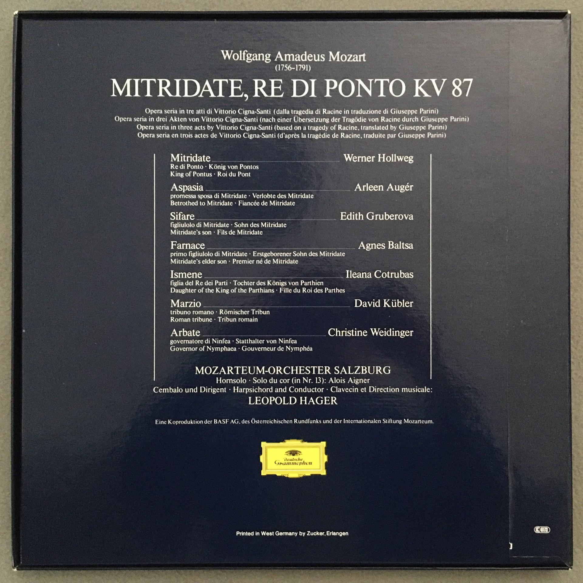D636 Mozart Mitridate Re Di Ponto Baltsa Auger Hager 4LP DGG 2740 180 Stereo