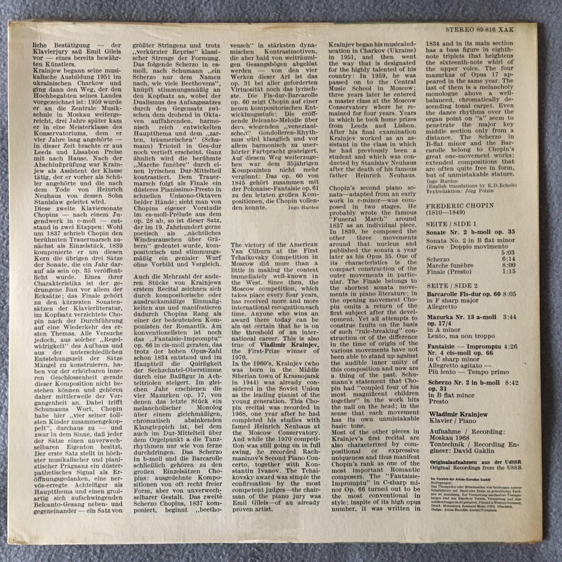 A024 Chopin Sonata Scherzo Krainjew Melodiya 89 816 XAK Stereo SEALED