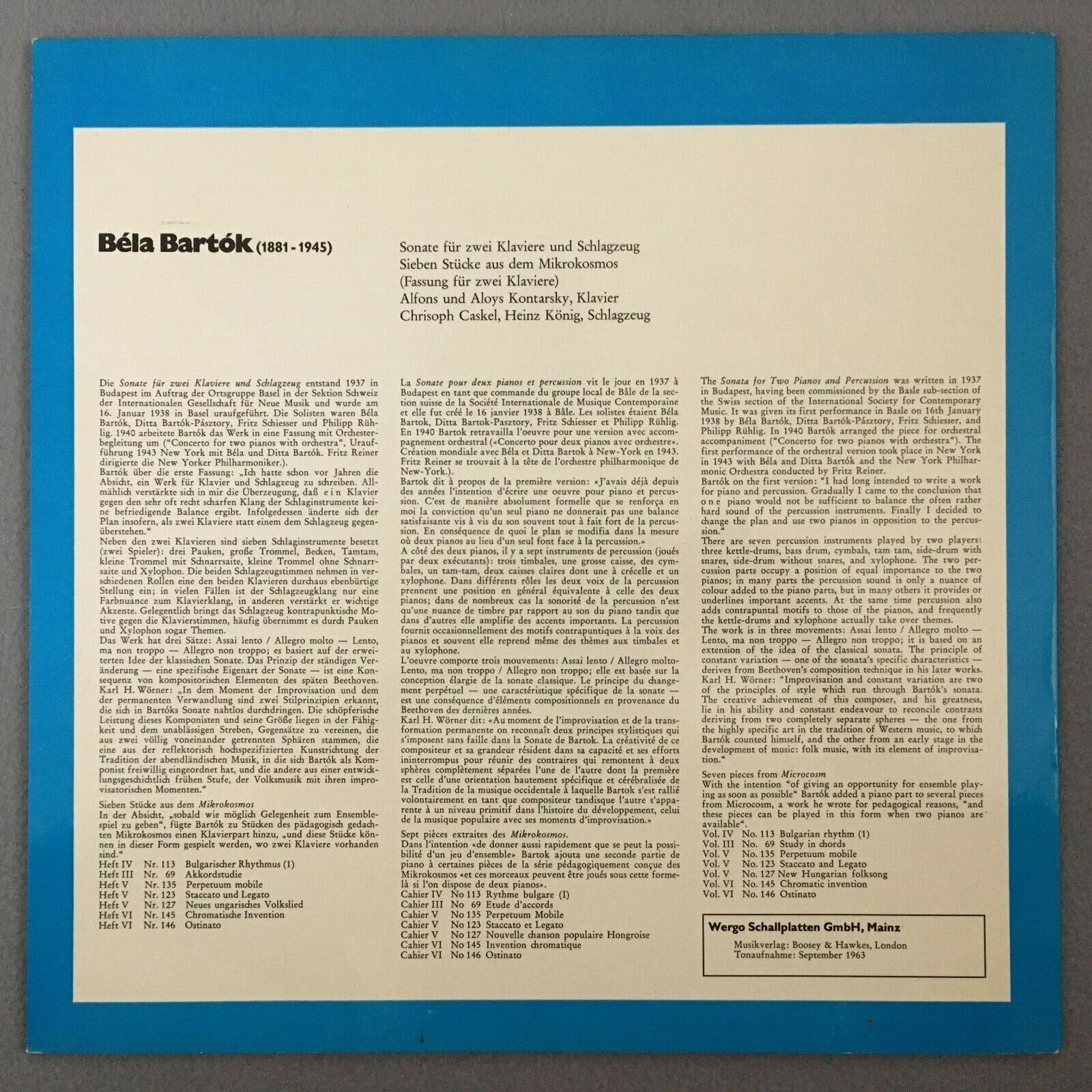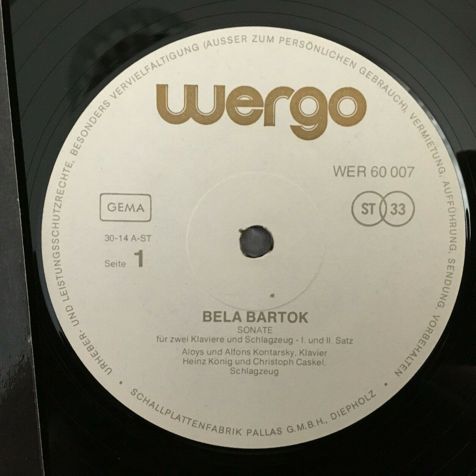 Y463 Bartok Piano Sonata 7 Pieces A. & A. Kontarsky Wergo WER 60 007 Stereo