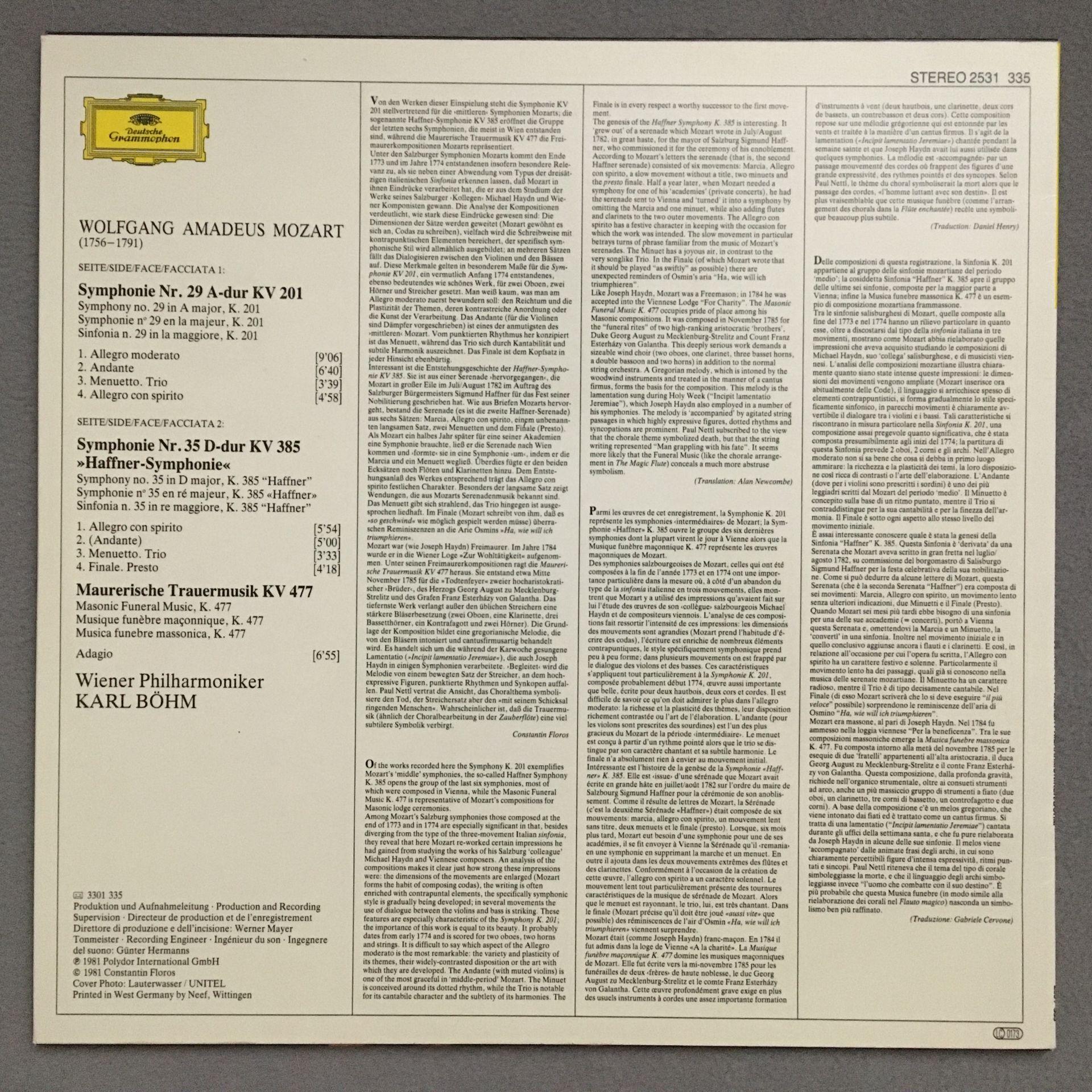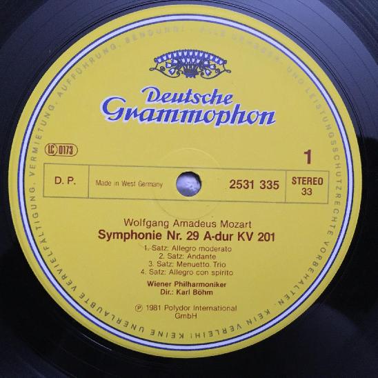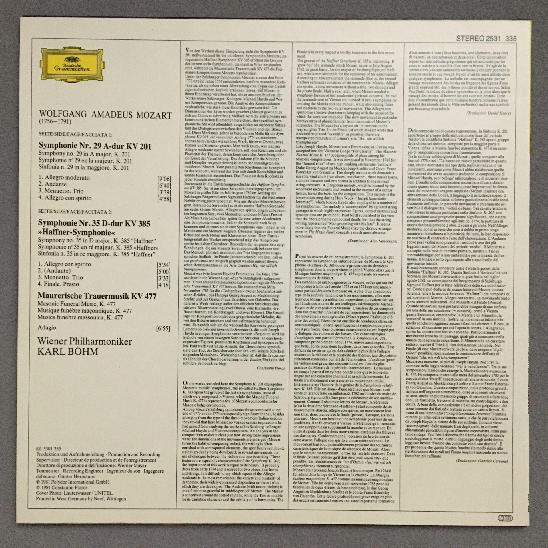 N942 Mozart Symphonies No. 29 & No.35 Bohm VPO DGG 2531 335 Stereo