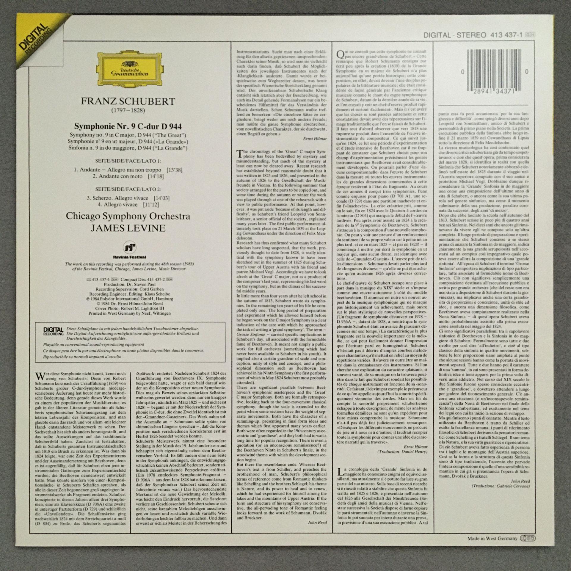 N947 Schubert Symphony No.9 Levine DGG 413 437-1 Digital Stereo