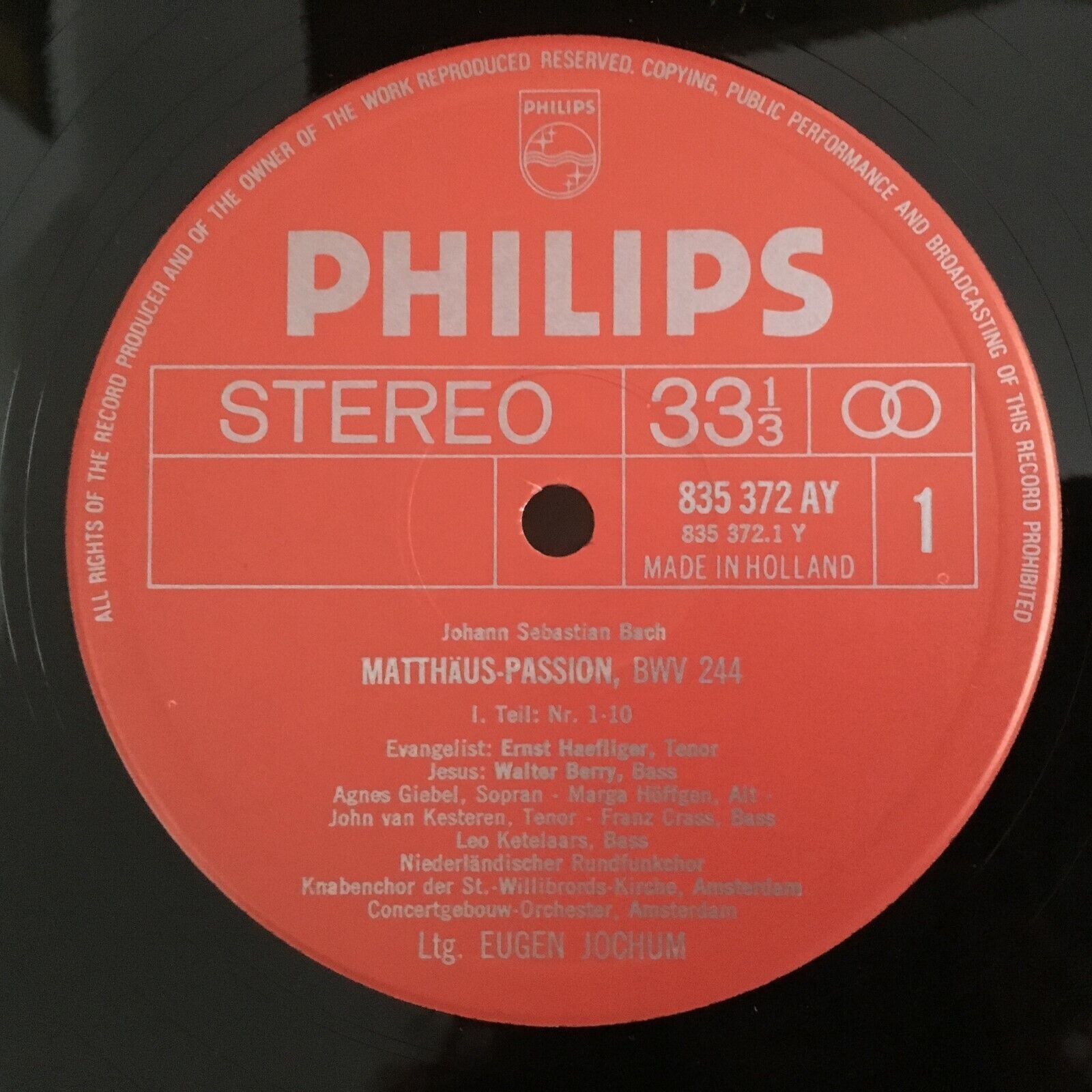 G054 Bach St. Matthew Passion Haefliger Berry Jochum 4LP Philips 6747 371 Stereo