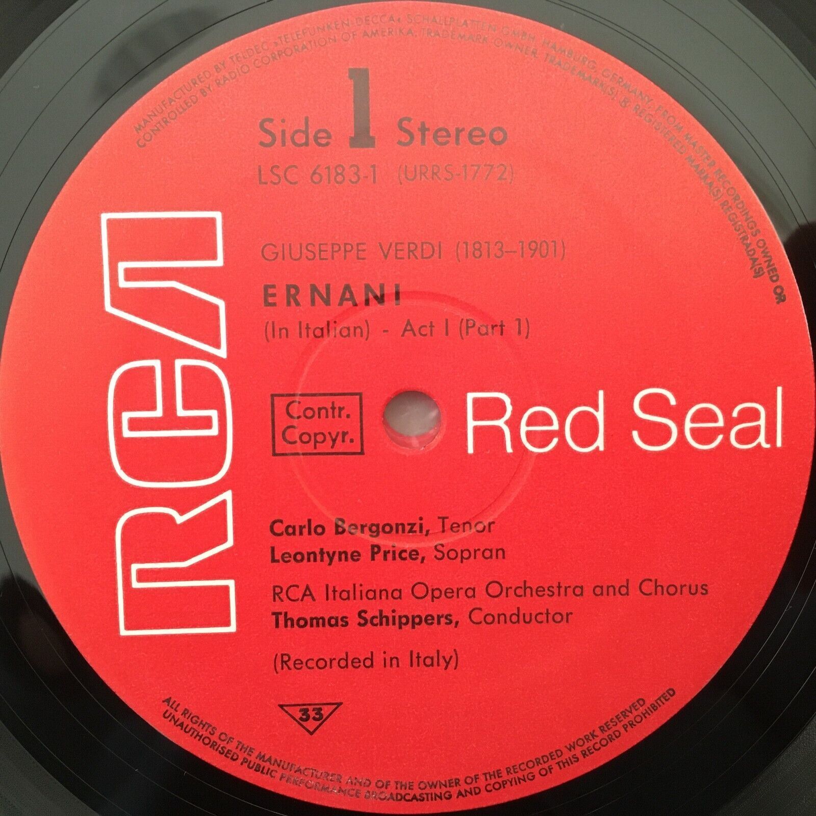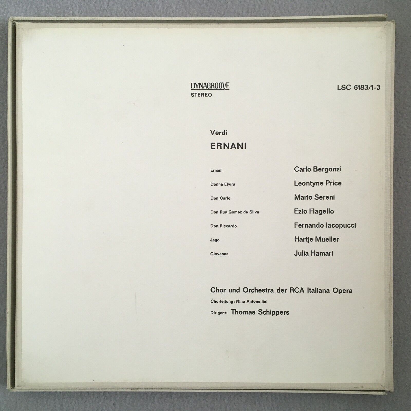 G488 Verdi Ernani Price Bergonzi Hamari Schippers 3LP RCA LSC 6183/1-3 Stereo