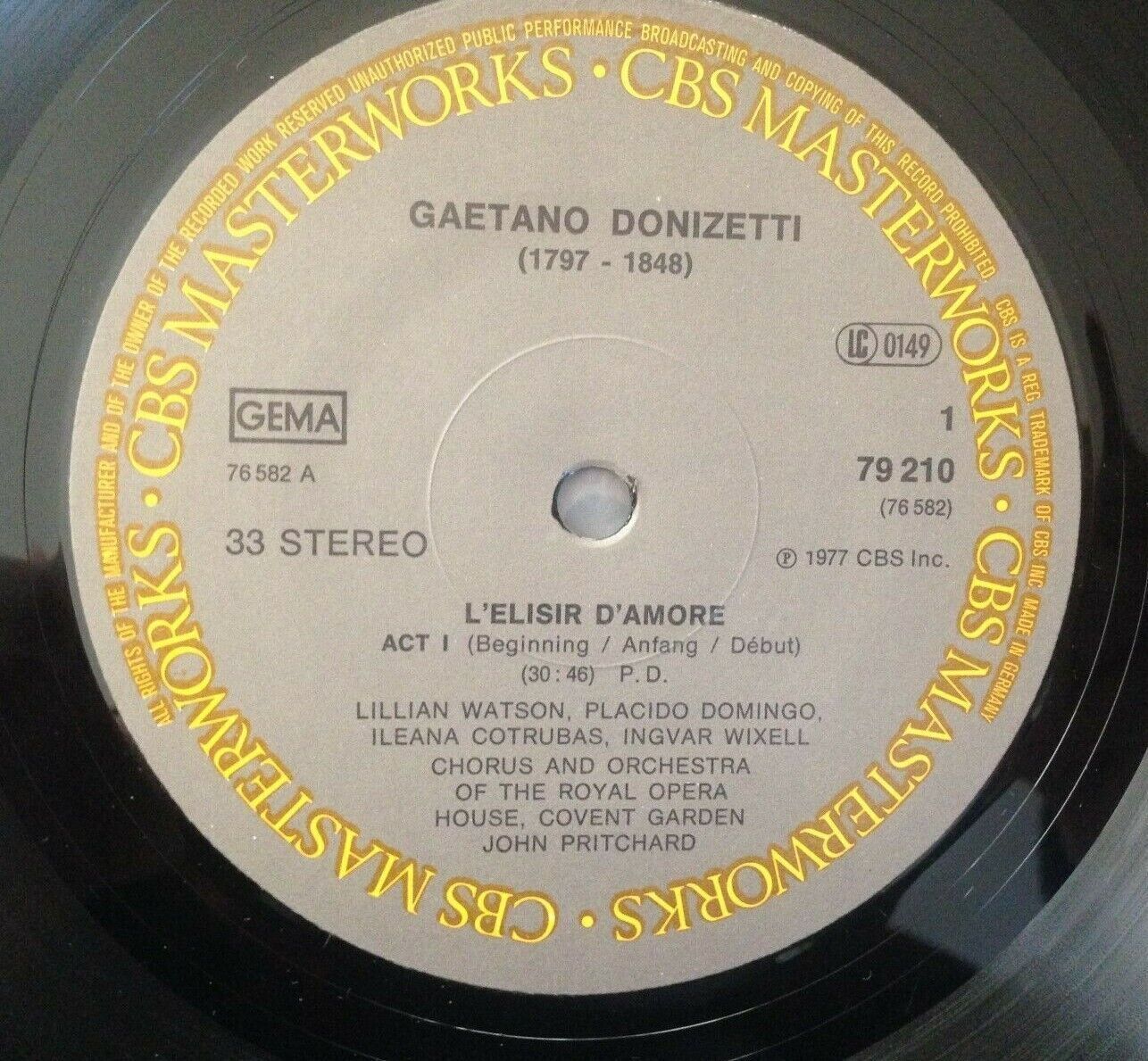 G492 Donizetti L´Elisir d´Amore Cotrubas Domingo Pritchard 2LP CBS 79210 Stereo
