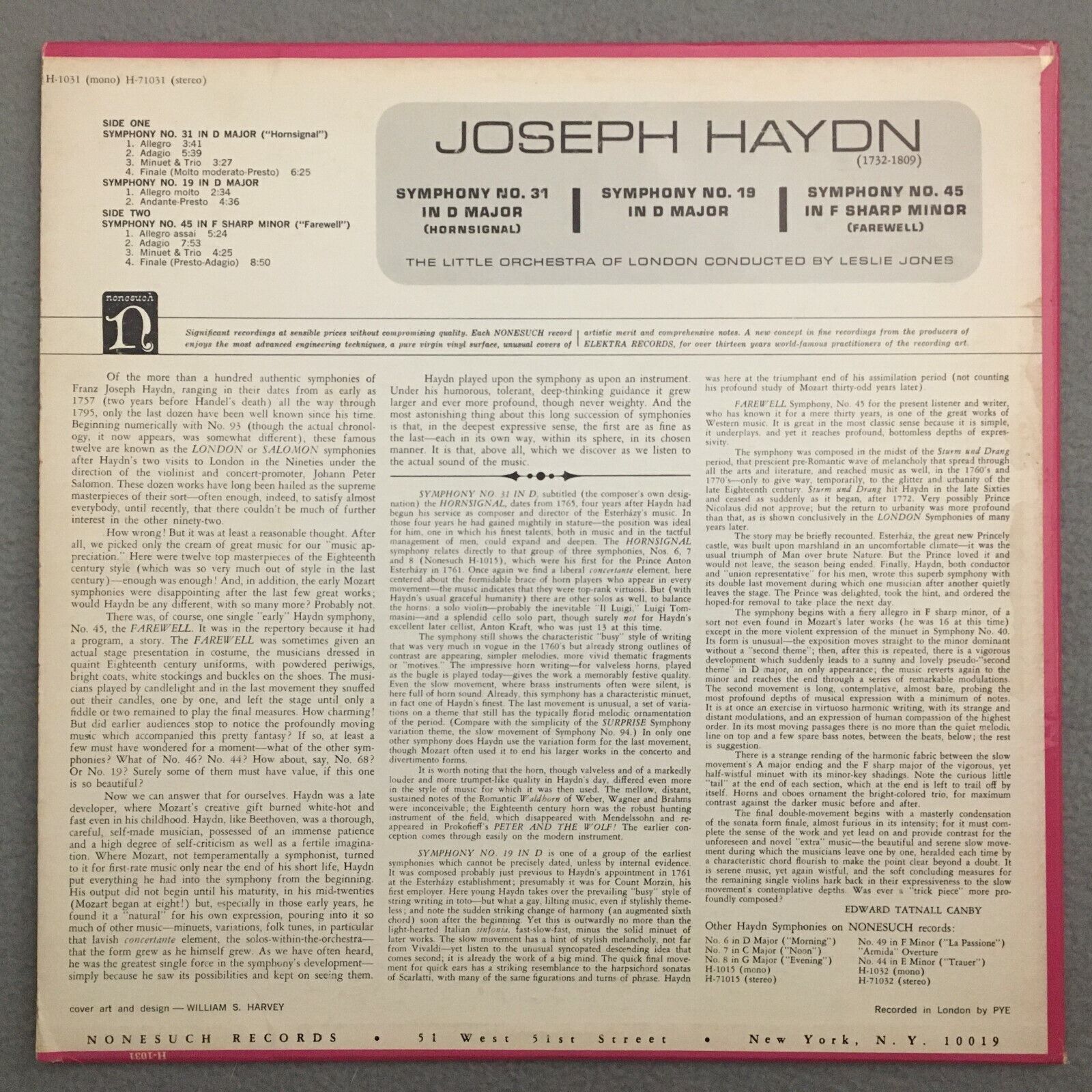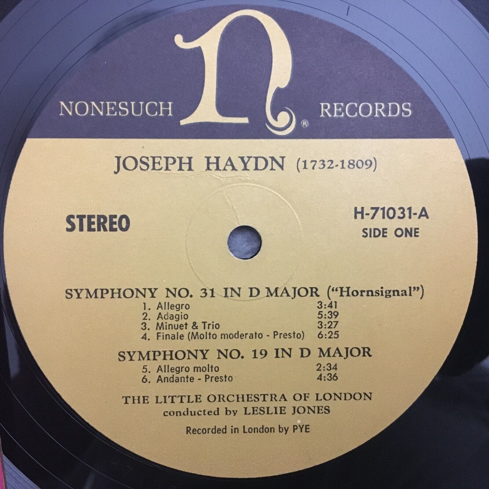 J178 Haydn Symphonies No.31, No.19, No.45 Jones Nonesuch H-71031 Stereo