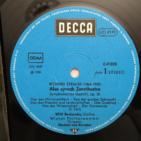 N975 R. Strauss Also speaks Zarathustra Karajan VPO DECCA 6.41808 AF Stereo