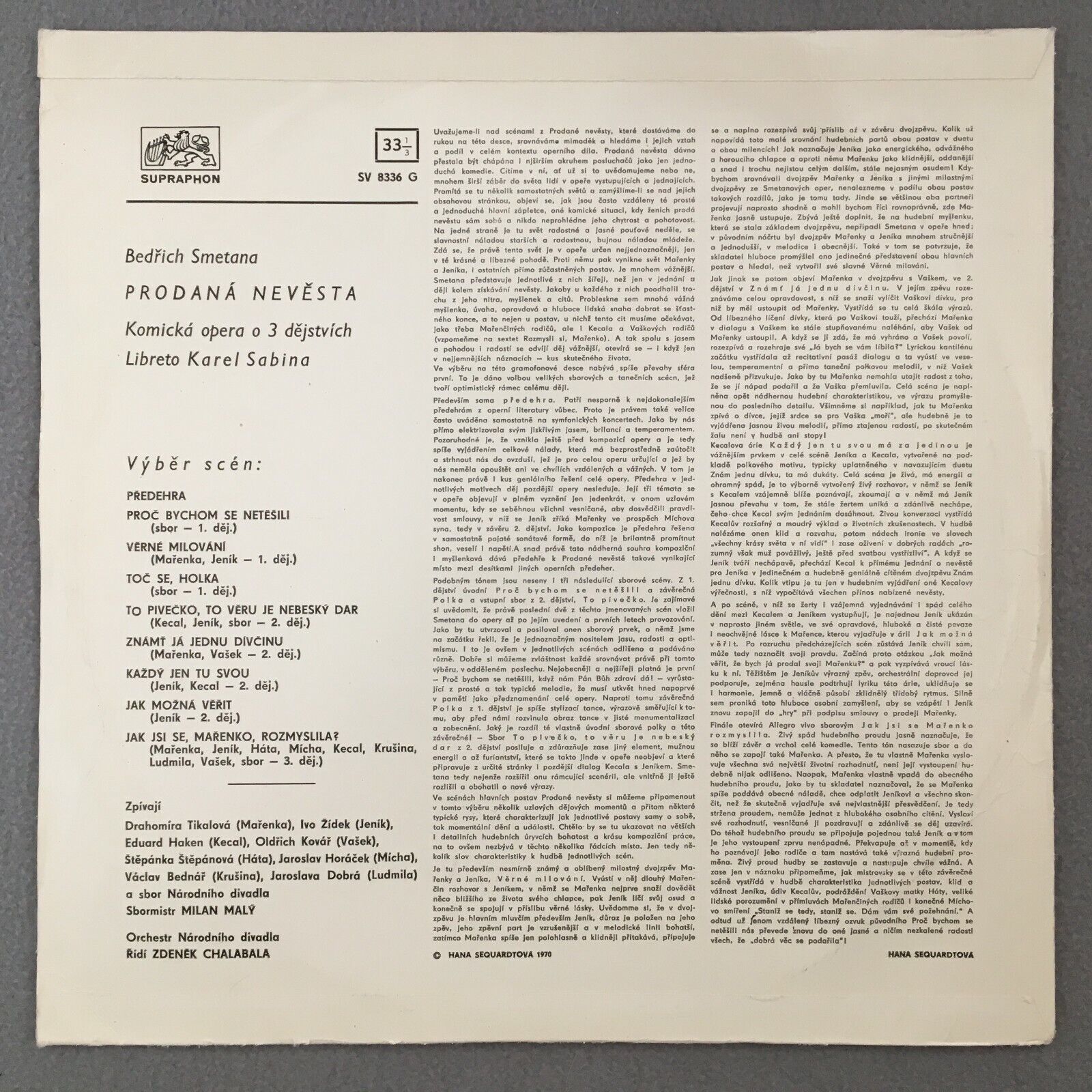 S139 Smetana Prodana Nevesta Chalabala Supraphon SV 8336 G Stereo ED1