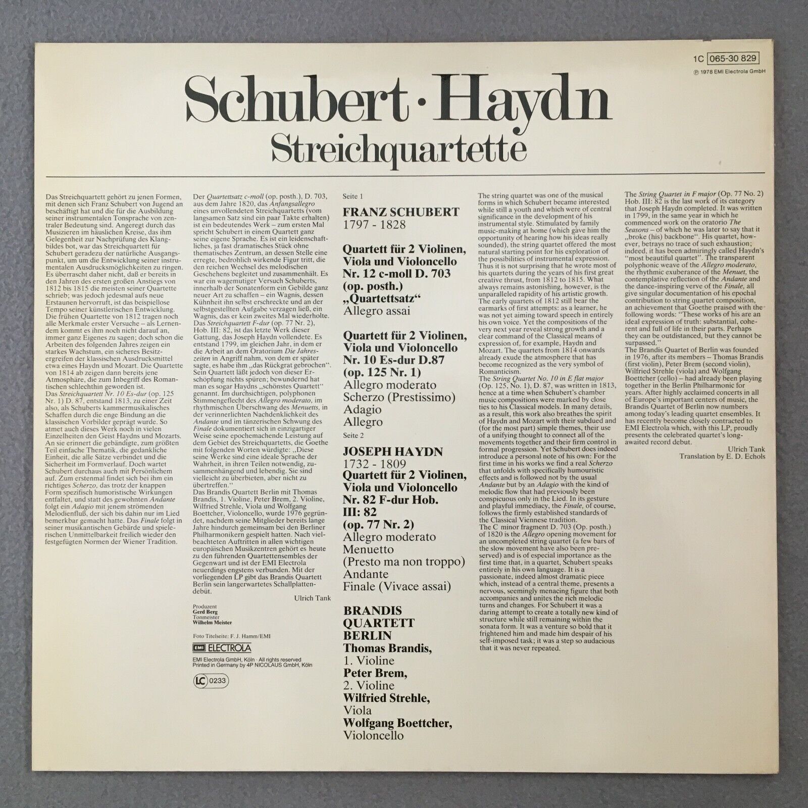 S138 Schubert Haydn String Quartets Brandis Quartet EMI 1C 065-30 829 Stereo