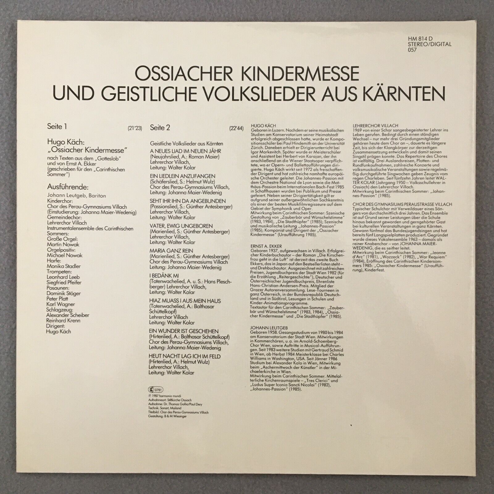 S136 Käch Childrens Mass Ossiach Harmonia Mundi HM 814 D Digital Stereo